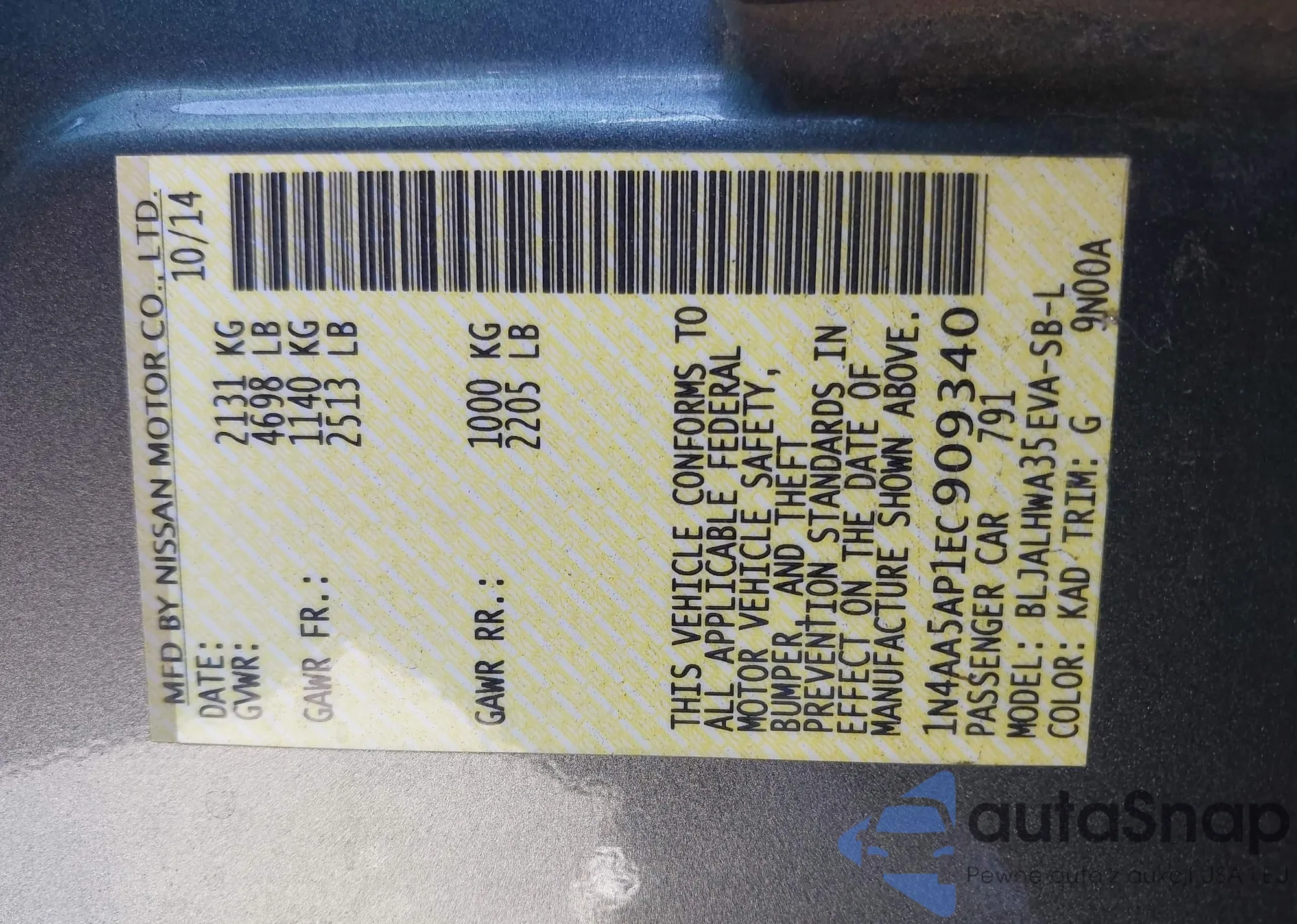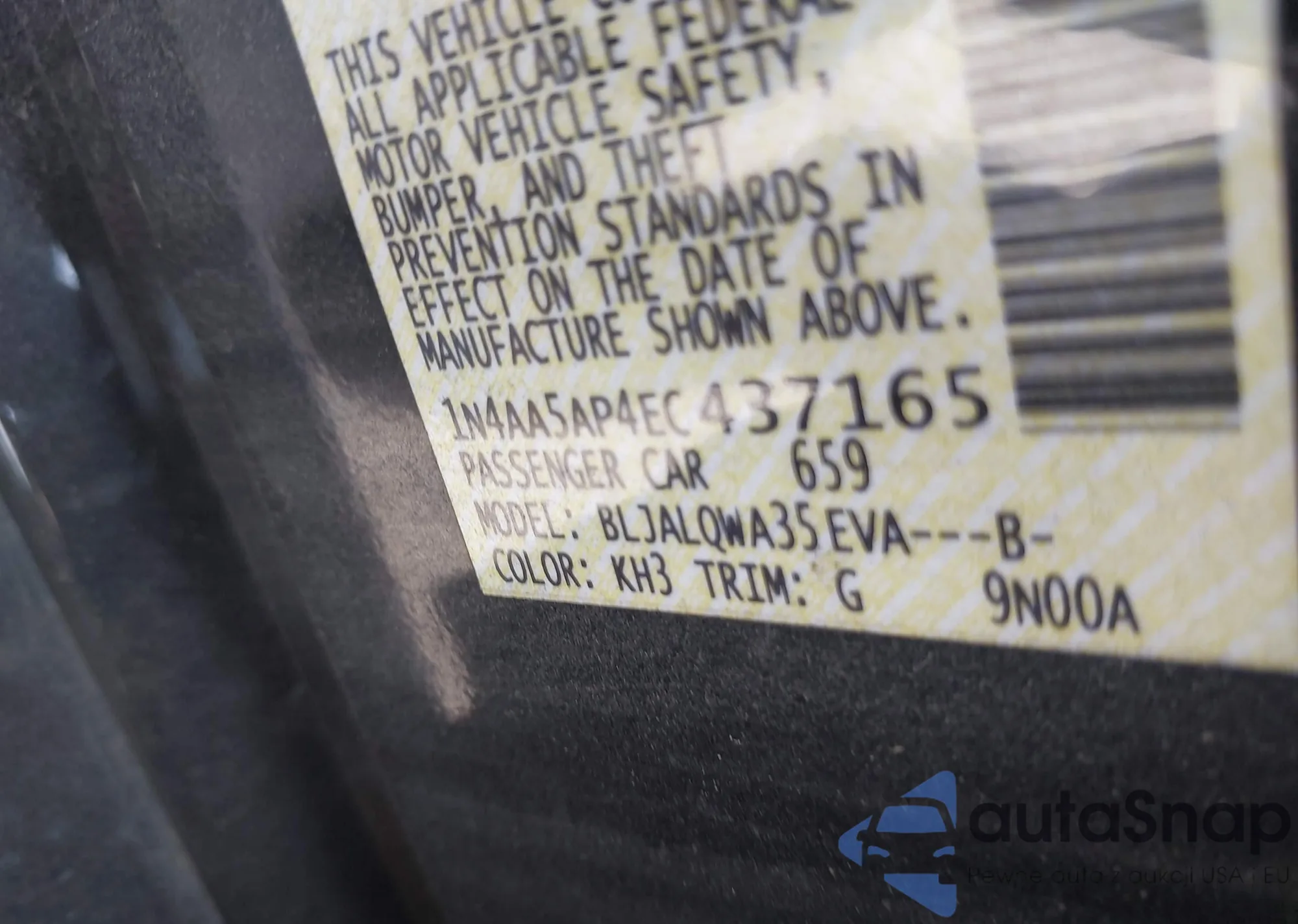 • VIN 1N4AL3AP7EC109415