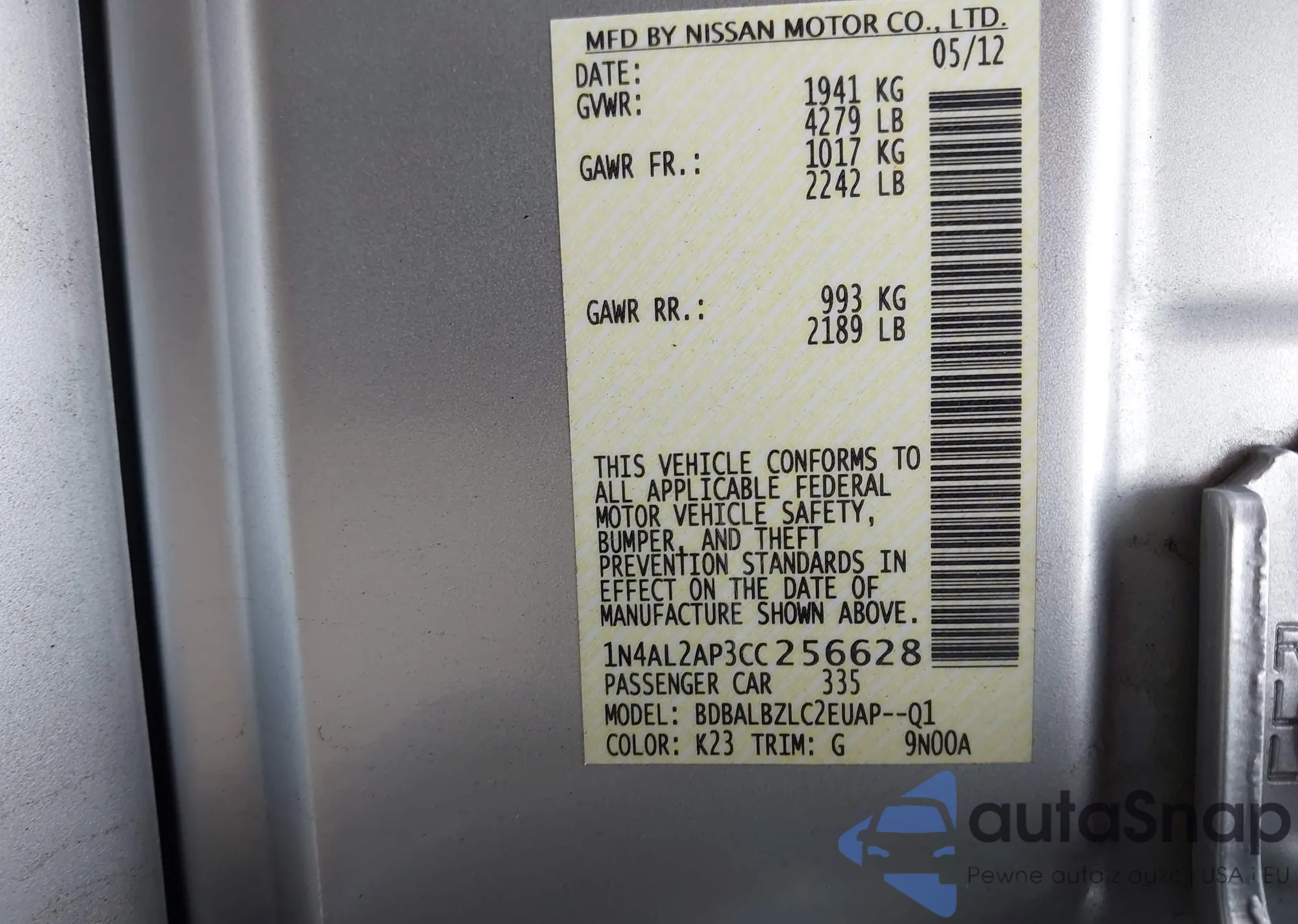 LOT: 43179389 VIN: 1N4AL3AP4JC189718