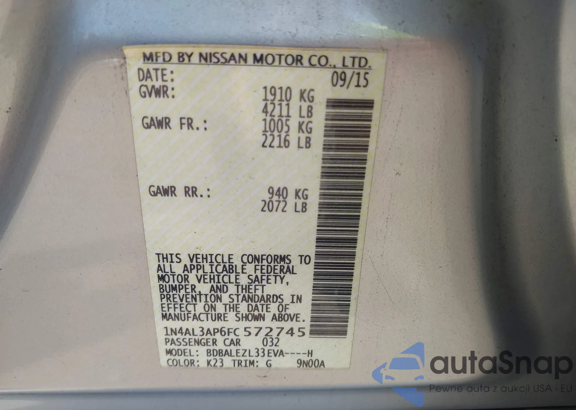 LOT: 42838414 VIN: 1N4AL3AP6FC572745