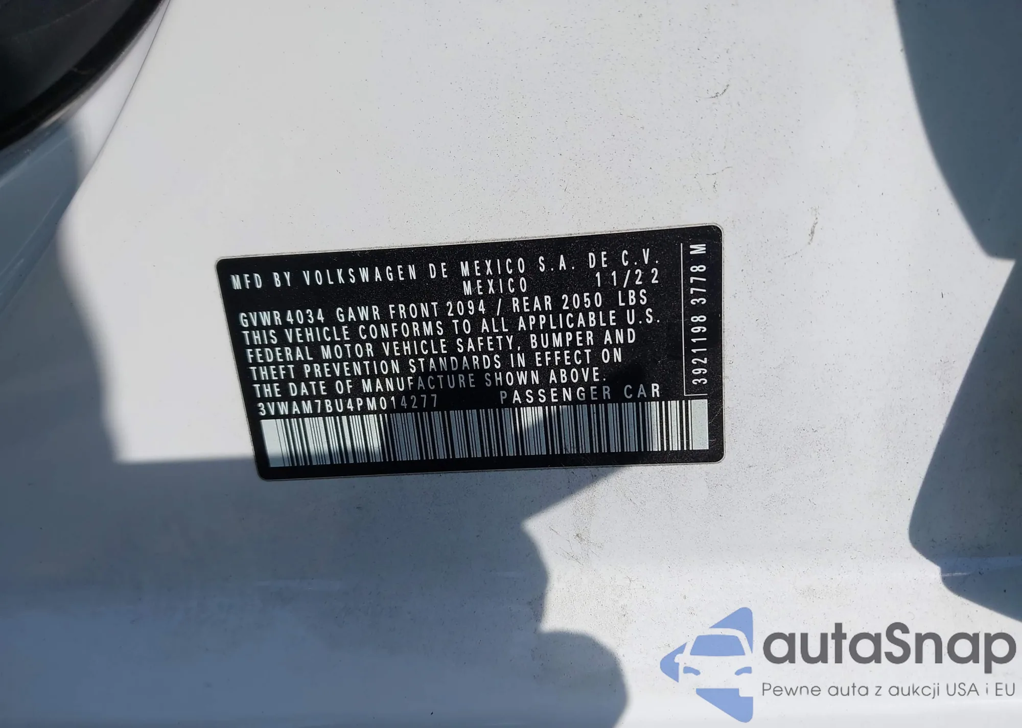 • VIN 3VWAM7BU4PM014277