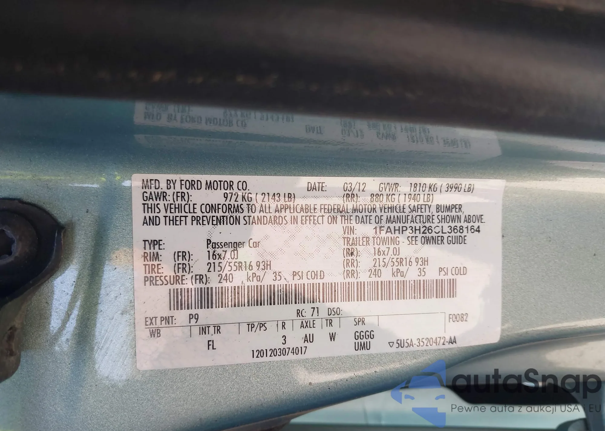 LOT: 42933251 VIN: 1FAHP3H26CL368164