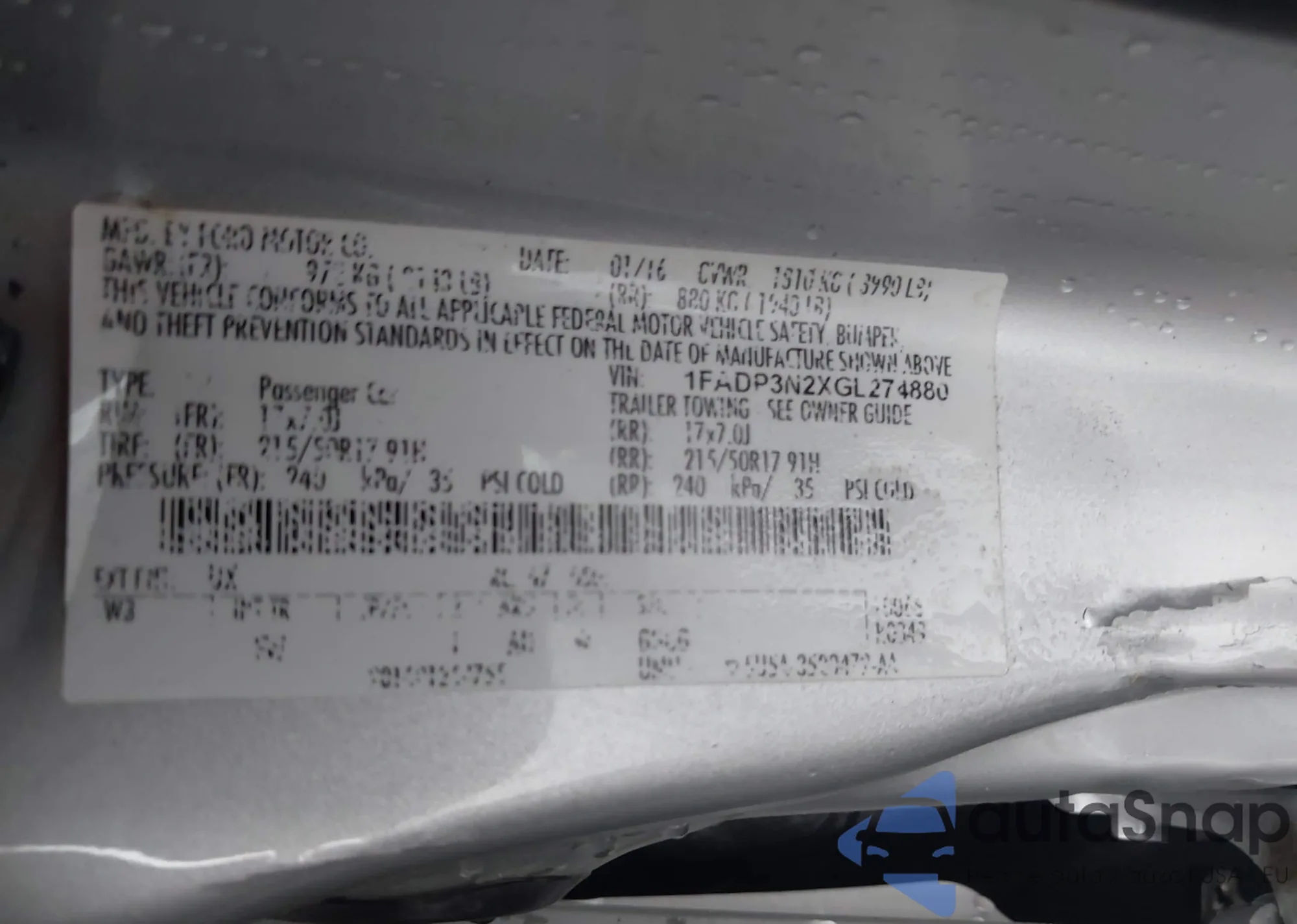 • VIN 1FA6P8AM4G5215759