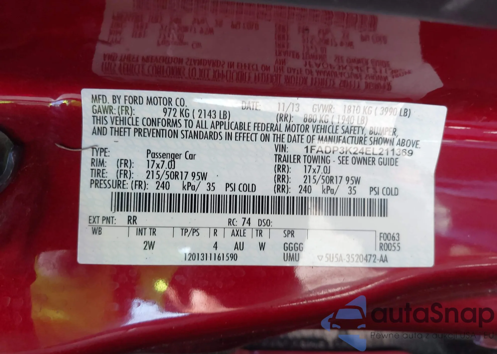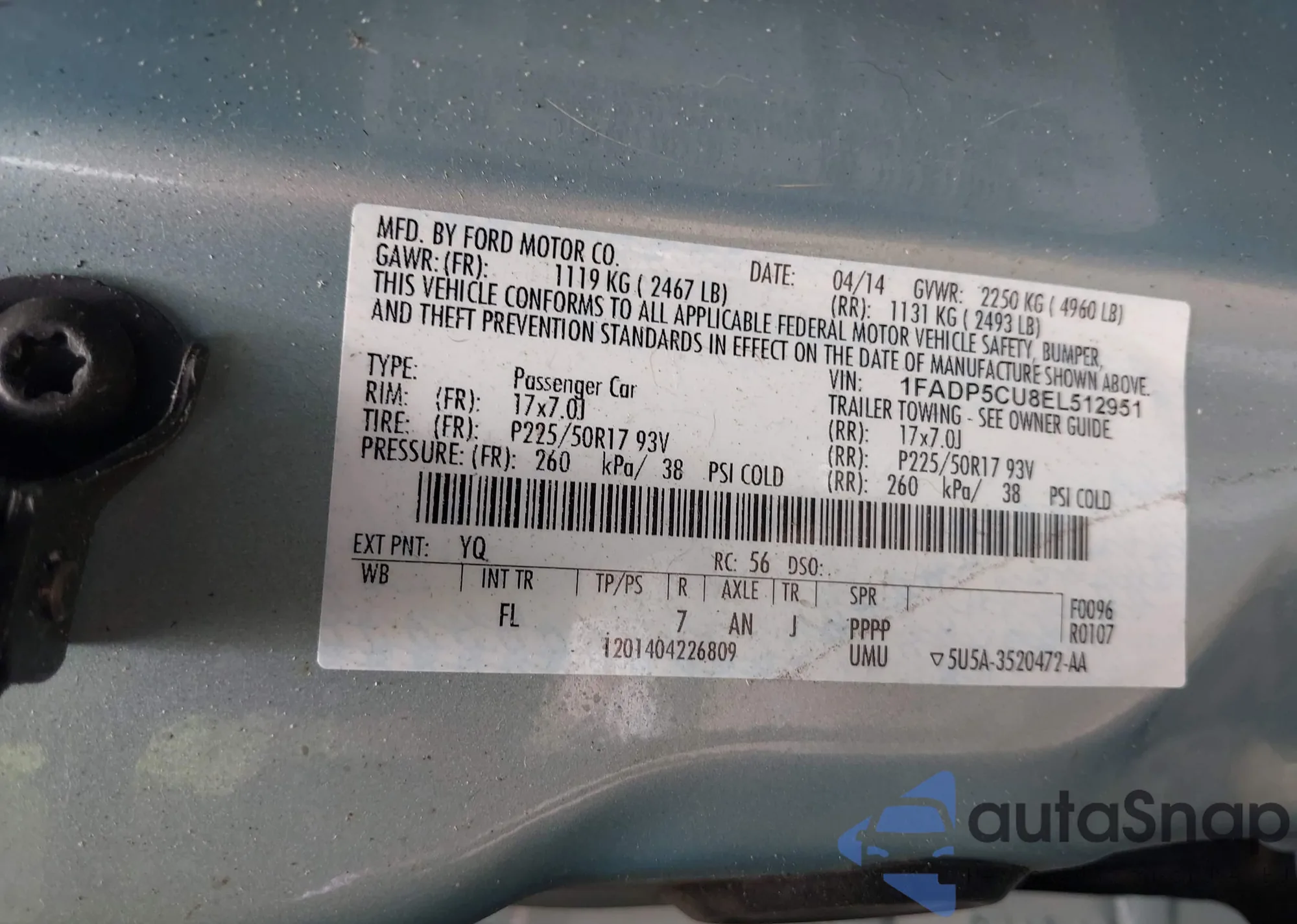 LOT: 42896014 VIN: 1FADP5CU8EL512951