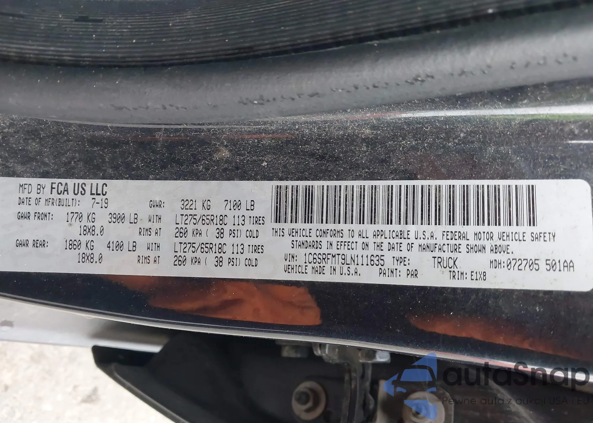 • VIN 1C6SRFMT9LN111635