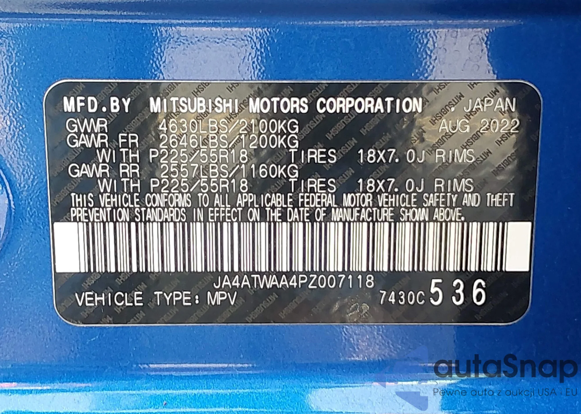 • VIN JA4ATWAA4PZ007118