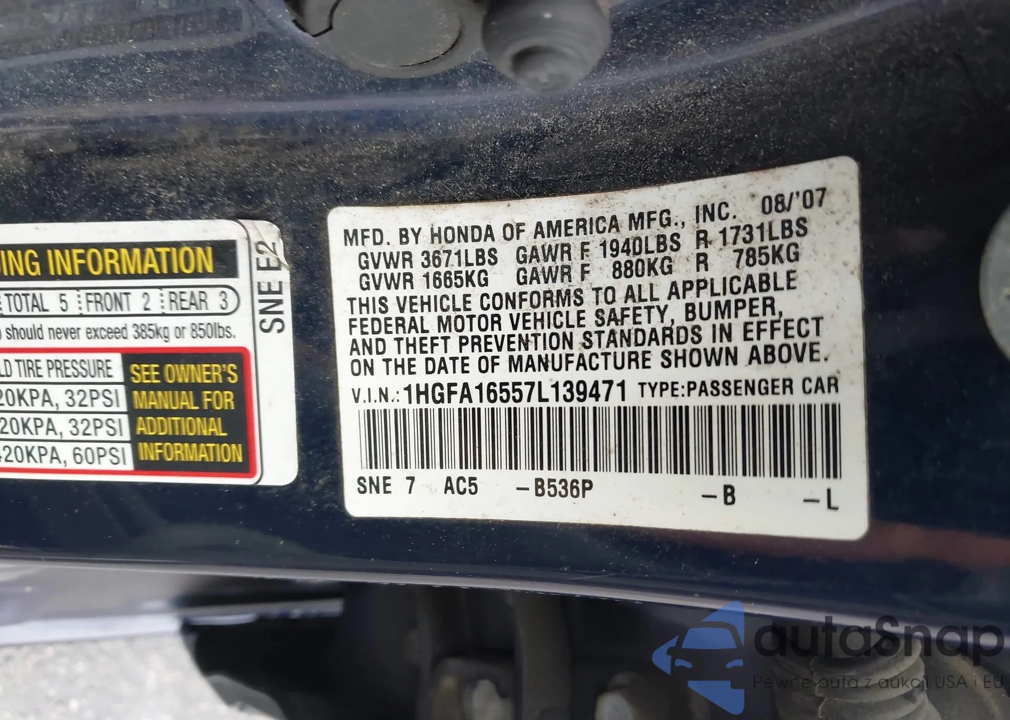 LOT: 42564749 VIN: 1HGFA16806L113031