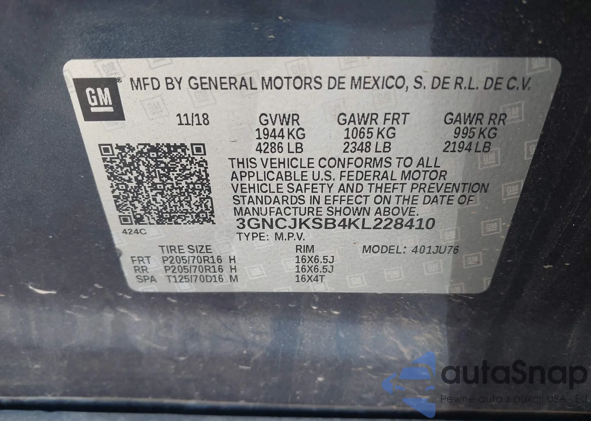 • VIN 3GNCJKSB4KL228410