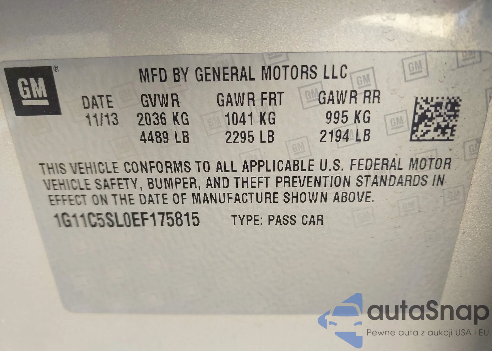 LOT: 43224221 VIN: 1G11C5SL0EF175815
