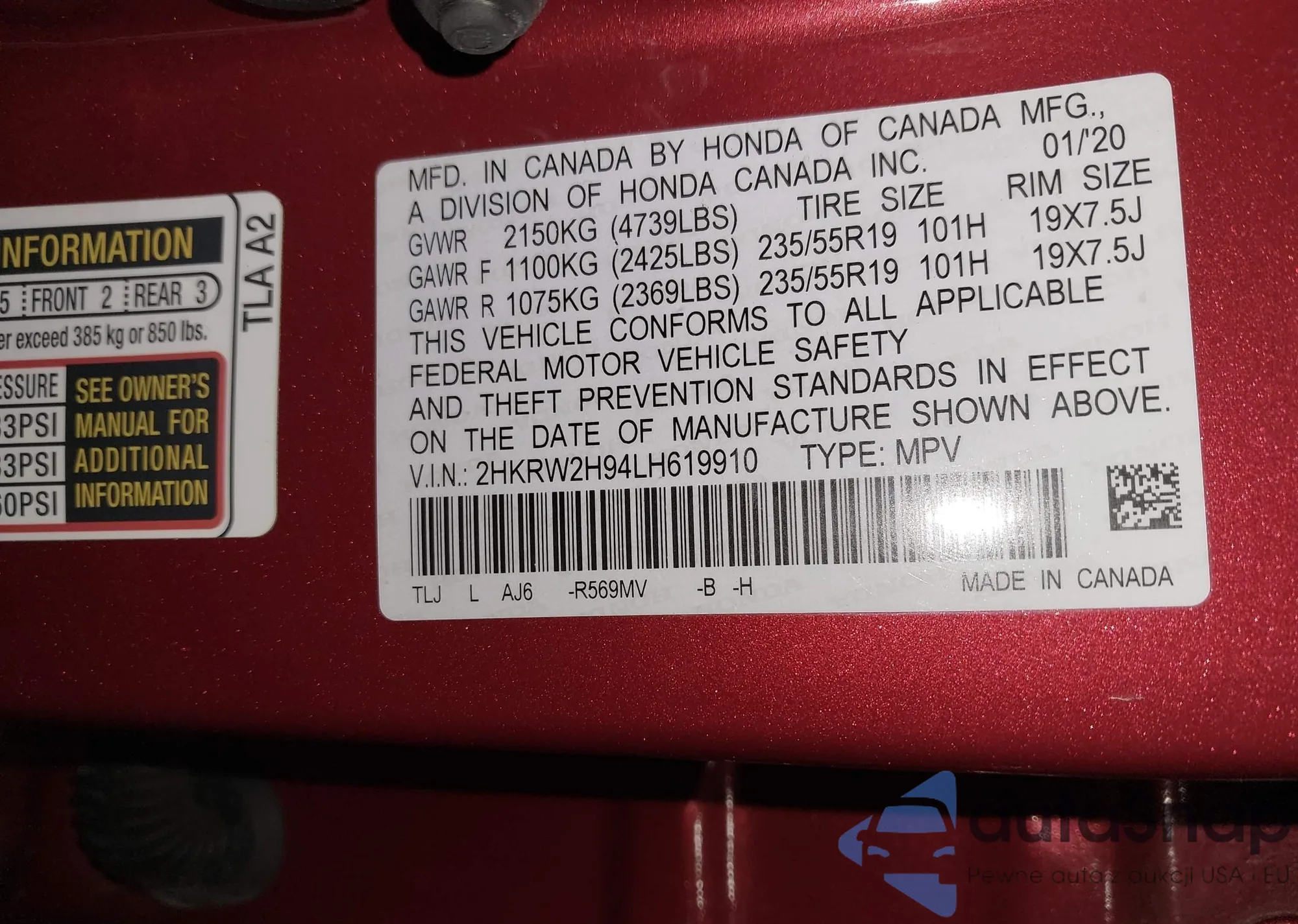 • VIN 2HKRW2H94LH619910