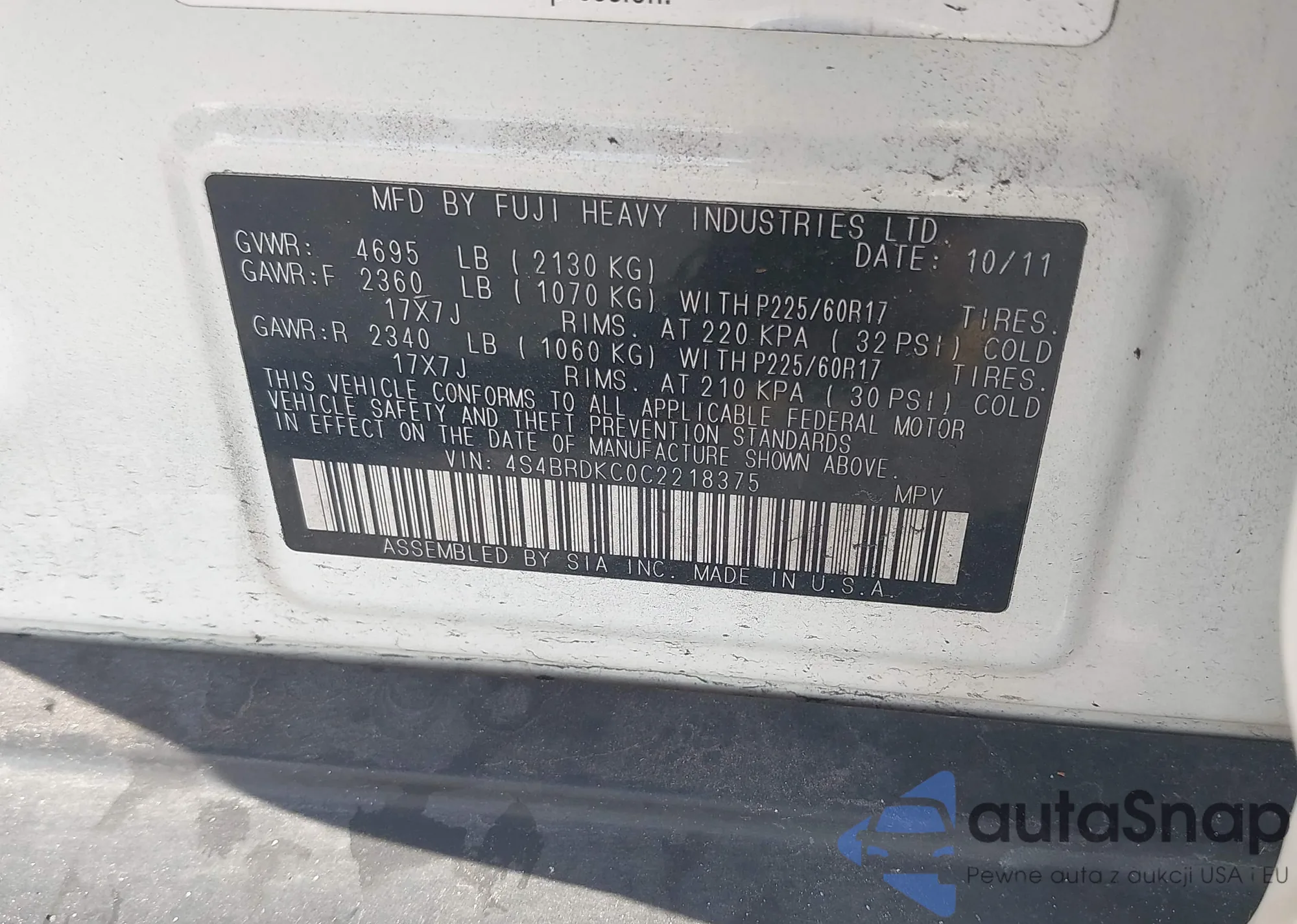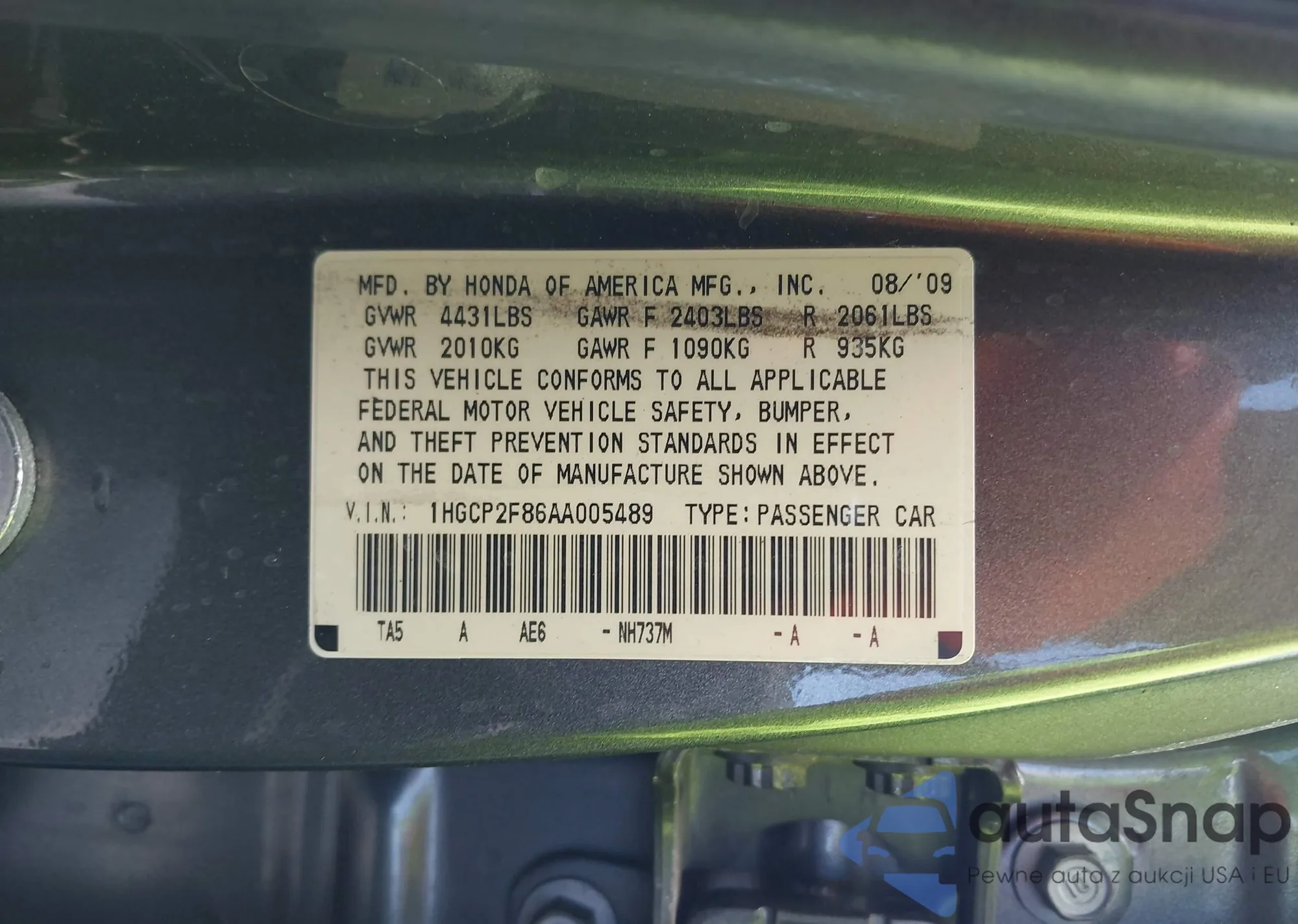 LOT: 43129057 VIN: 1HGCP2F86AA005489