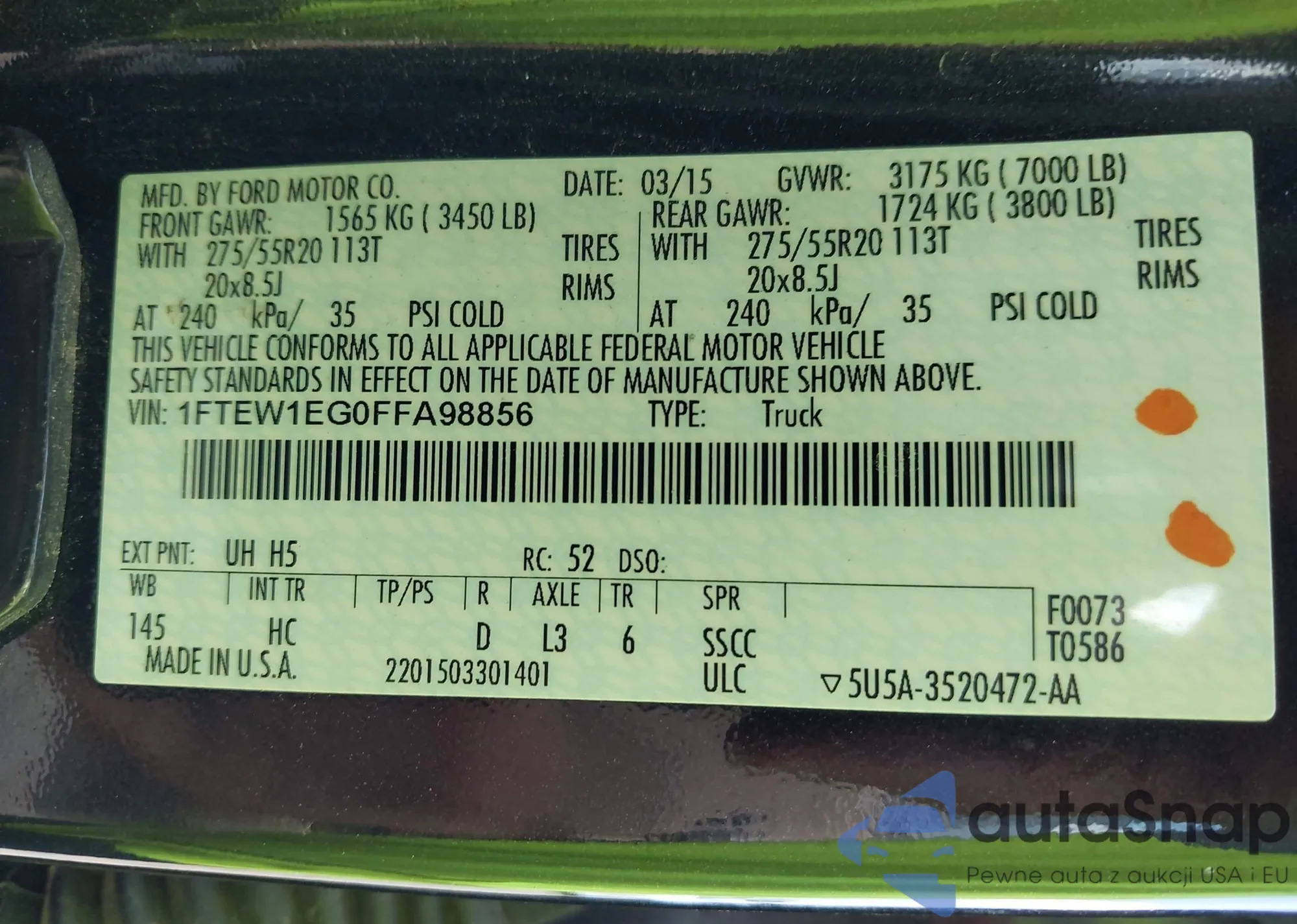 • VIN 1FTEW1EG0FFA98856