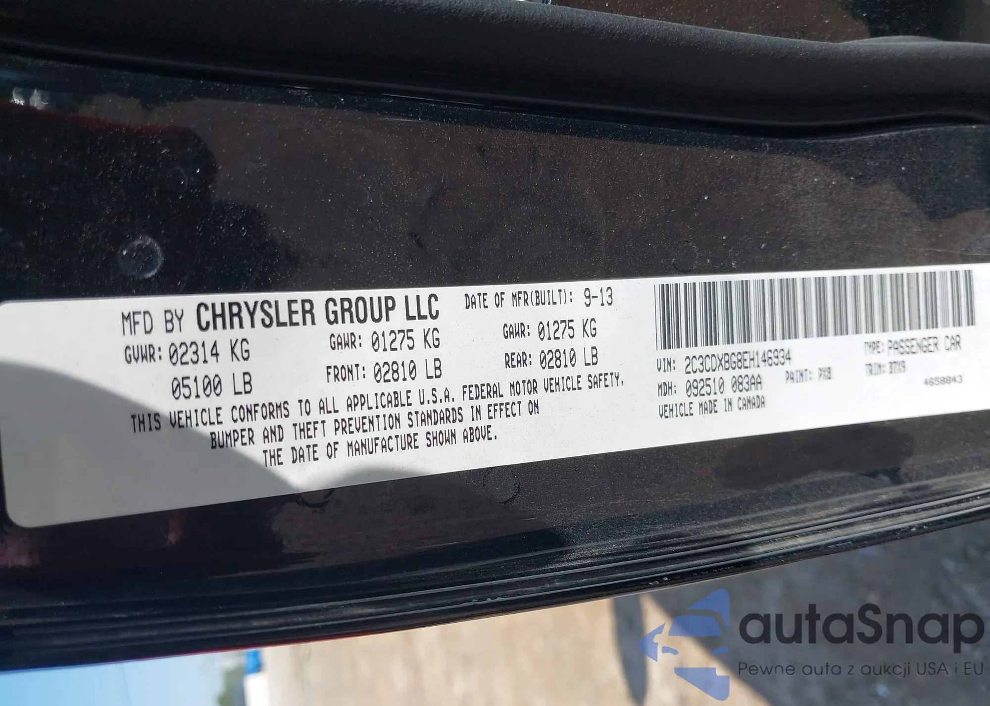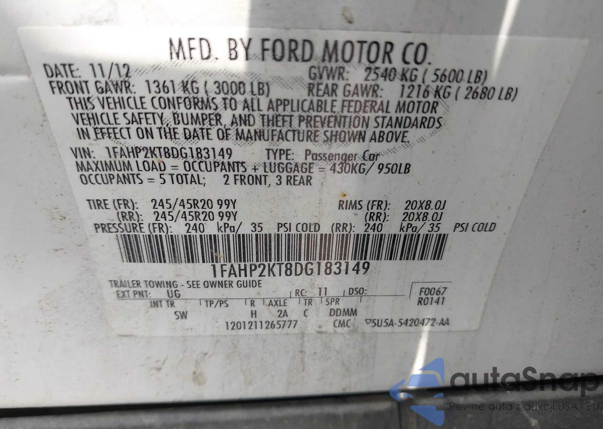 • VIN 1FAHP2KT8DG183149