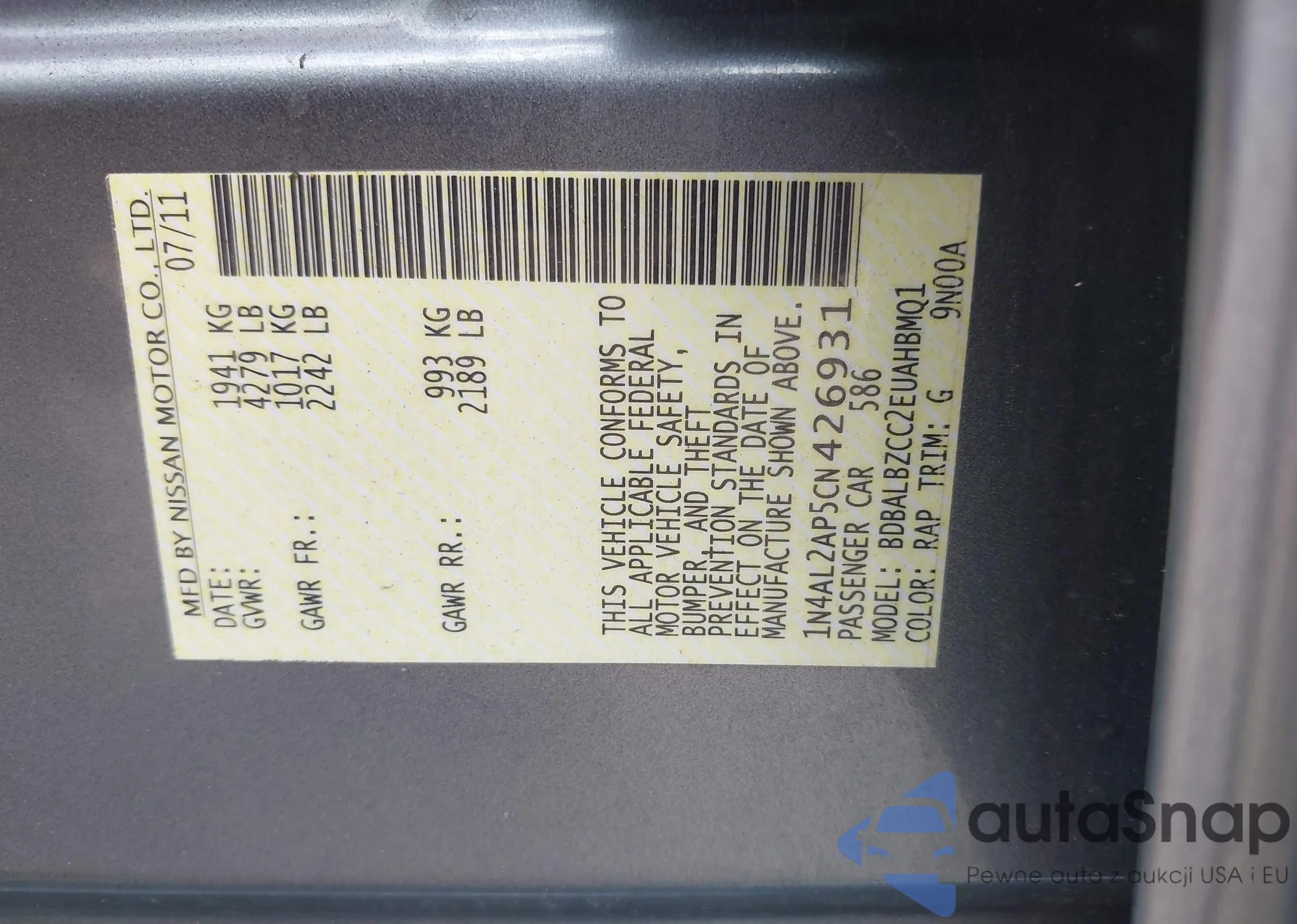 LOT: 43354142 VIN: JN8AF5MR7ET450344