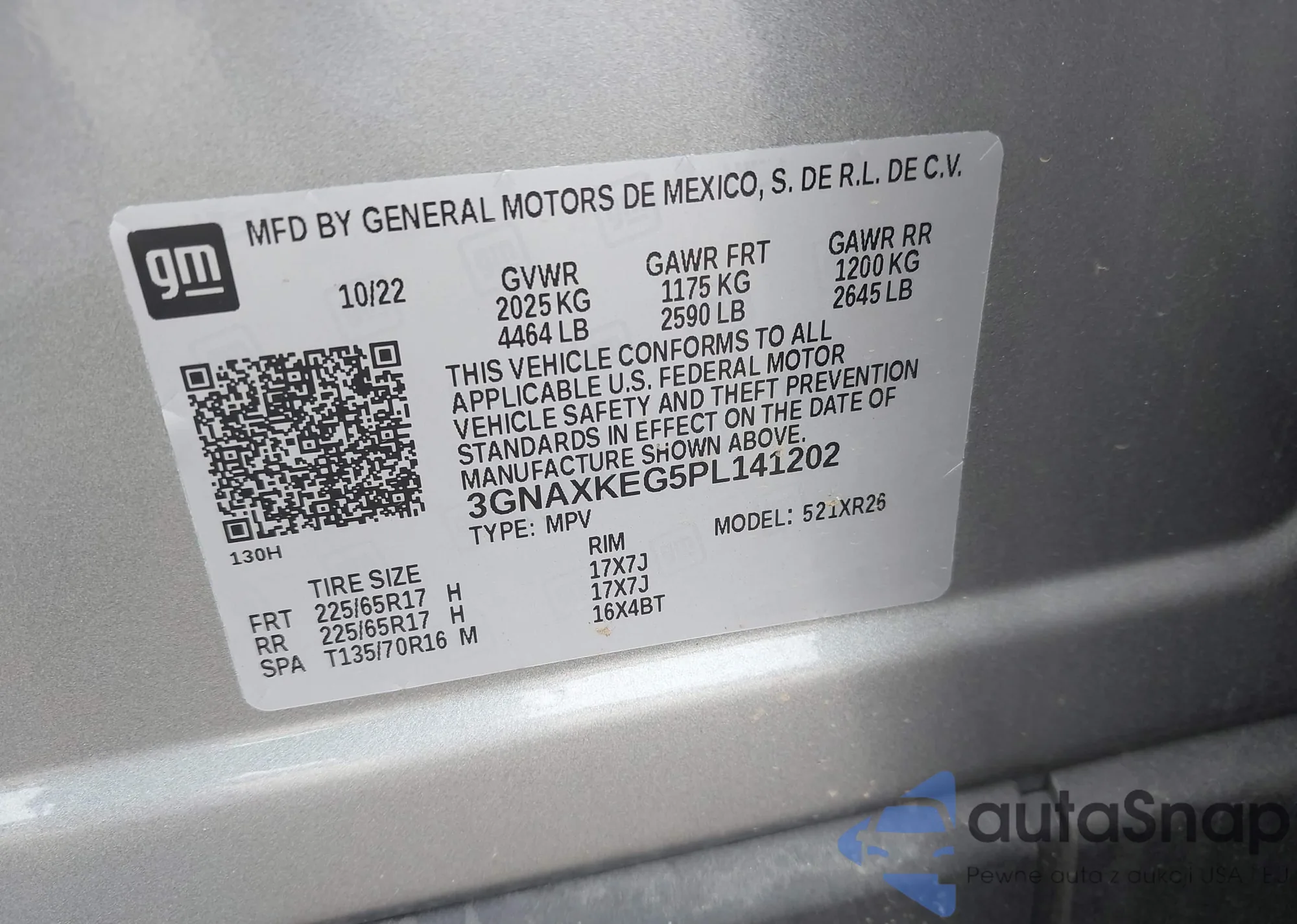 • VIN 1G1BE5SMXH7174497