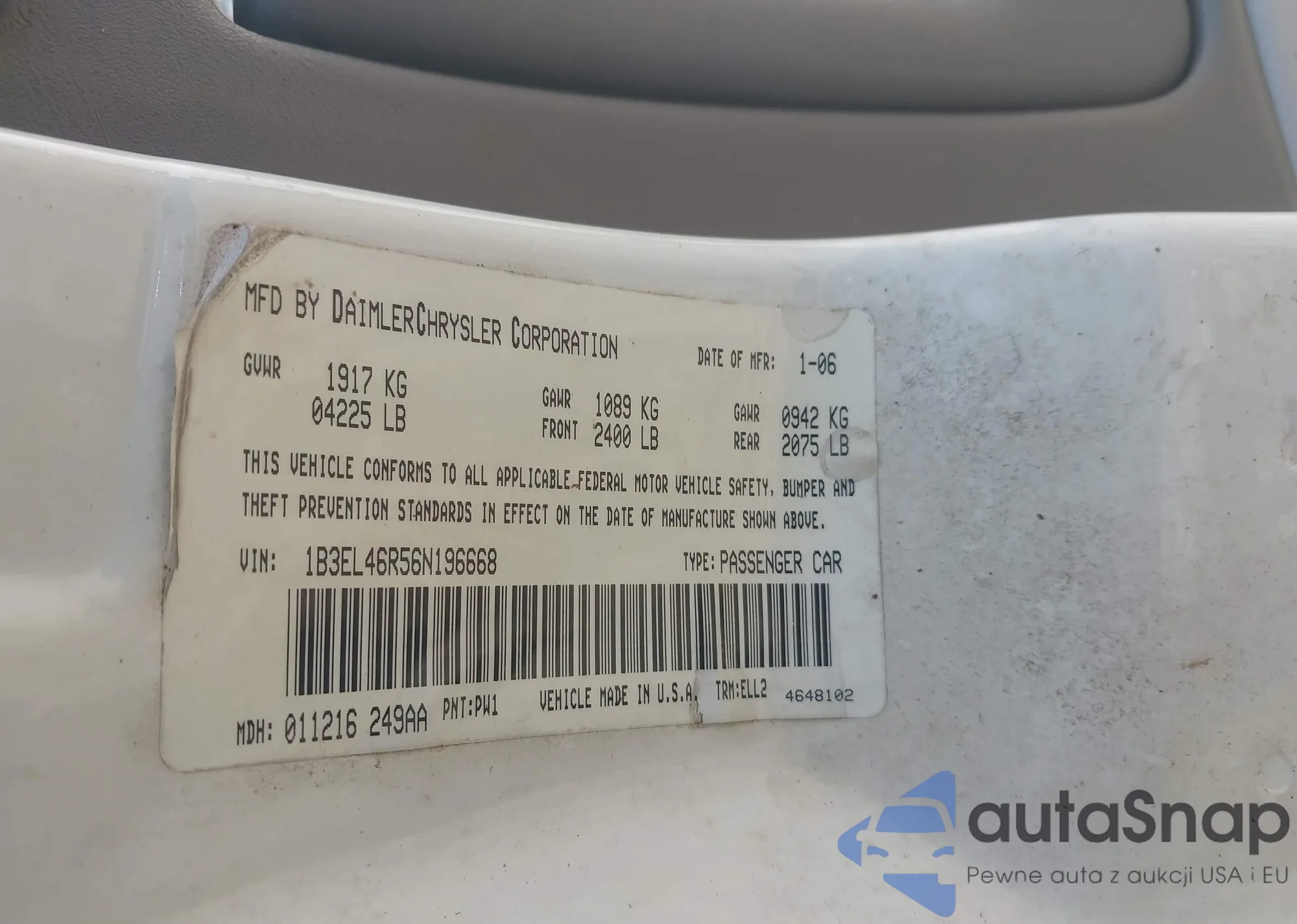 LOT: 43306888 VIN: 1B3EL46R56N196668