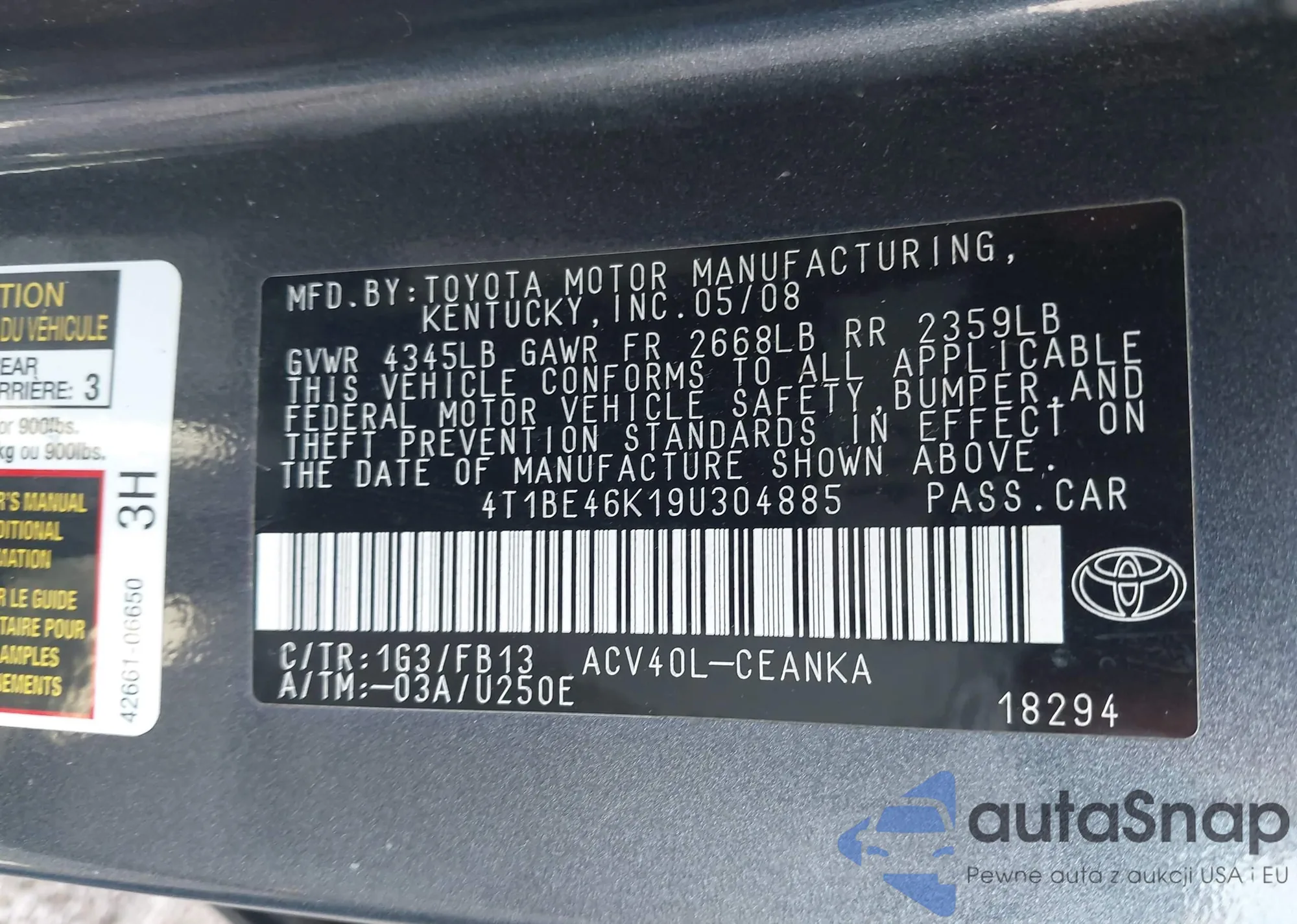 • VIN 2T2BK1BA8AC043339