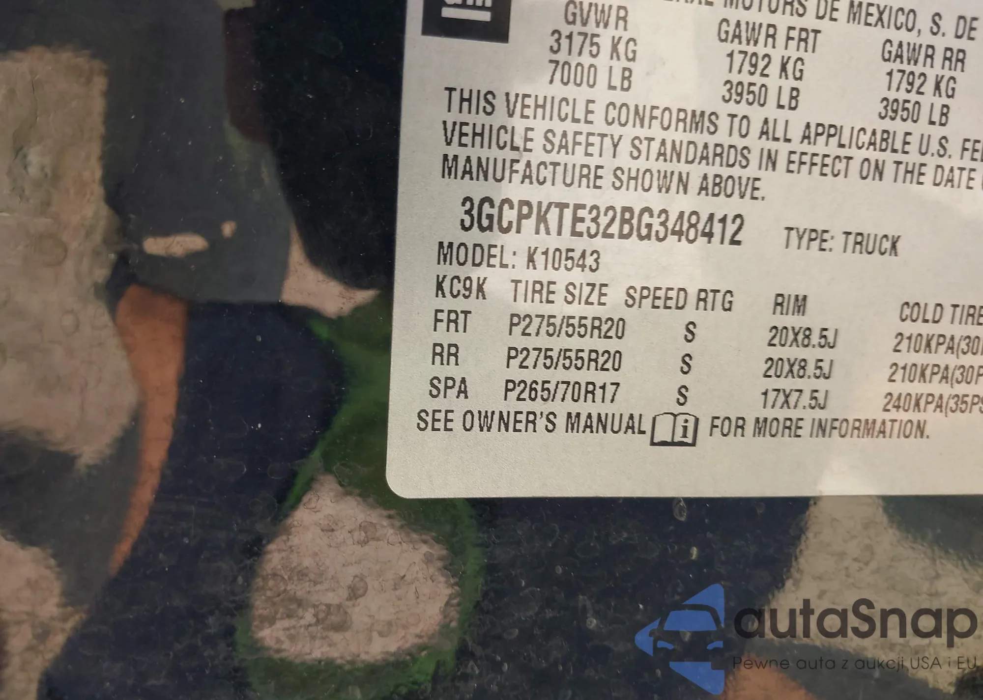 LOT: 43261638 VIN: 3GCPKTE32BG348412