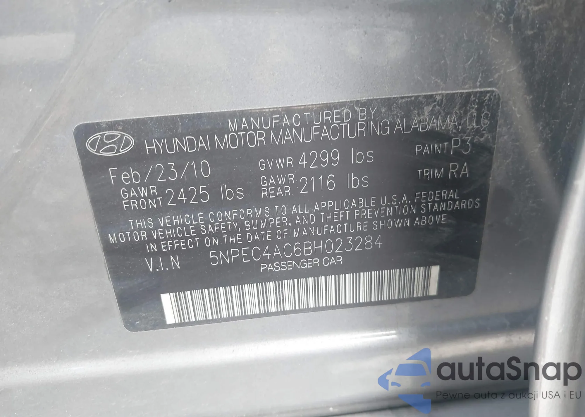 • VIN 5NPEC4AC6BH023284