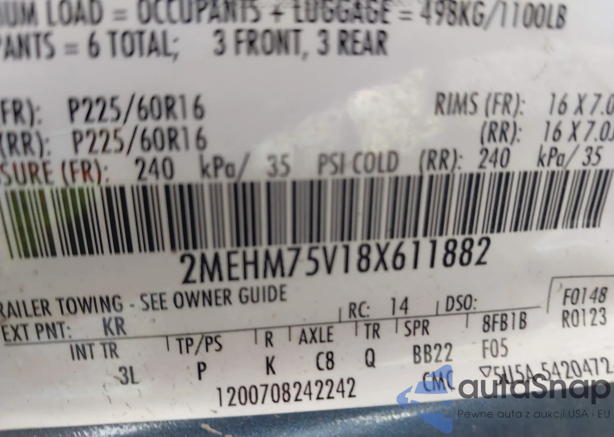 LOT: 43308692 VIN: 2MEHM75V18X611882