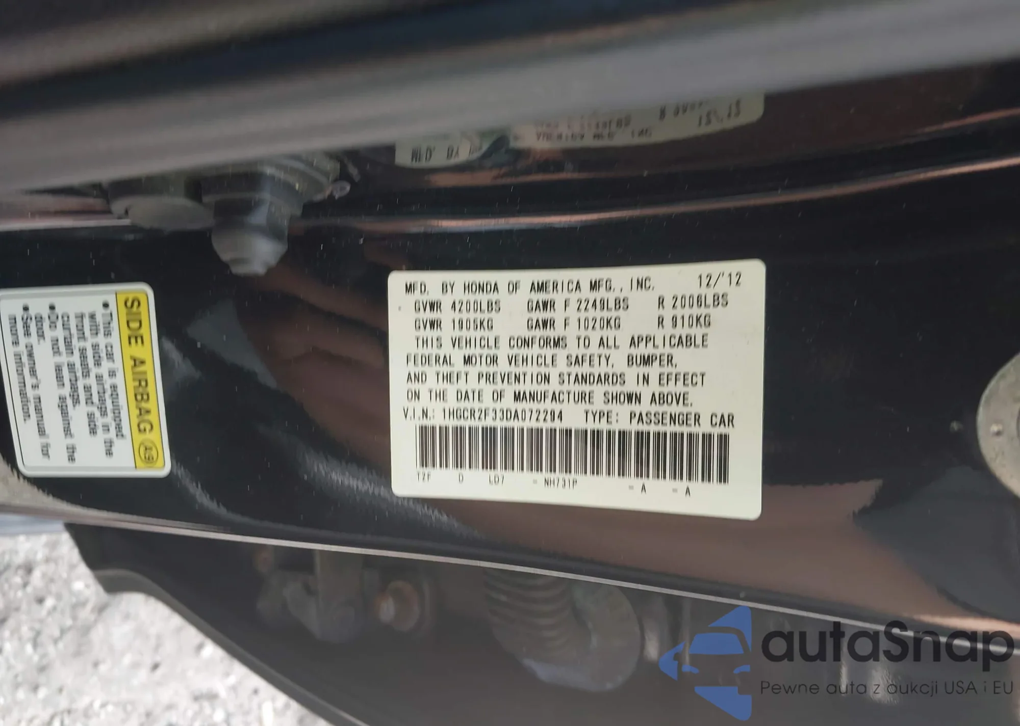 • VIN 1HGCR2F33DA072294