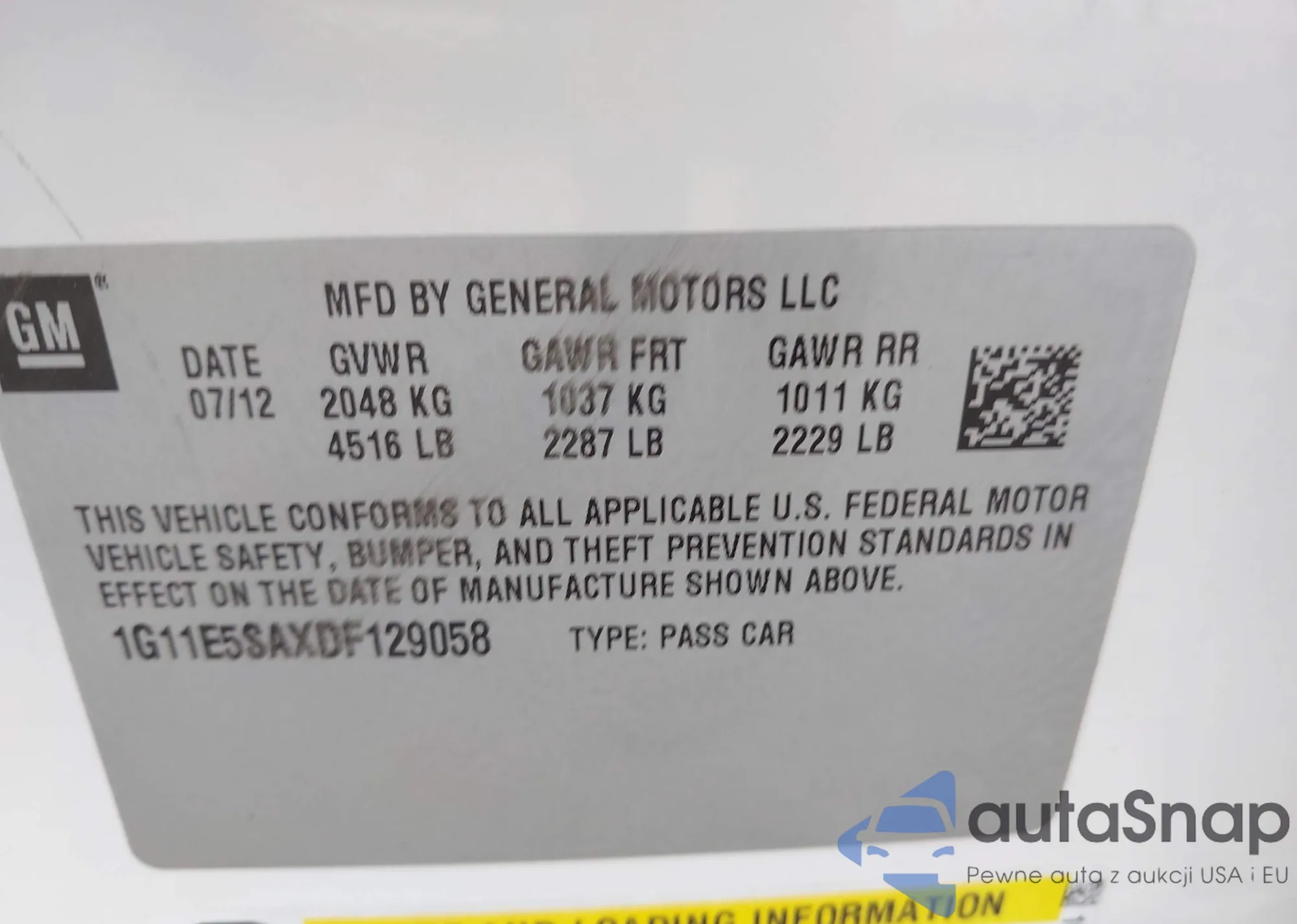 • VIN 1G11E5SAXDF129058