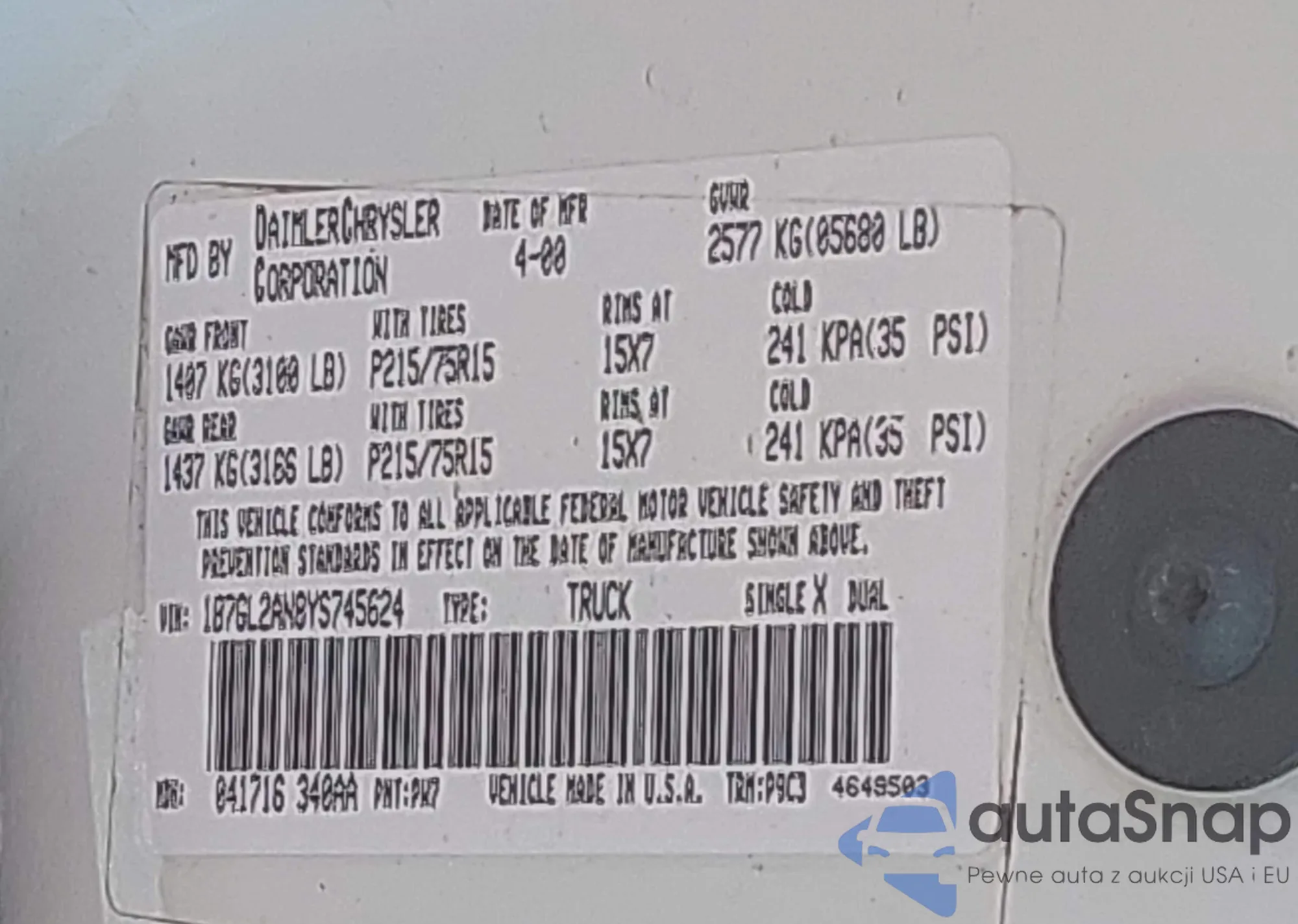 LOT: 43288456 VIN: 1FA6P8AM9F5372184