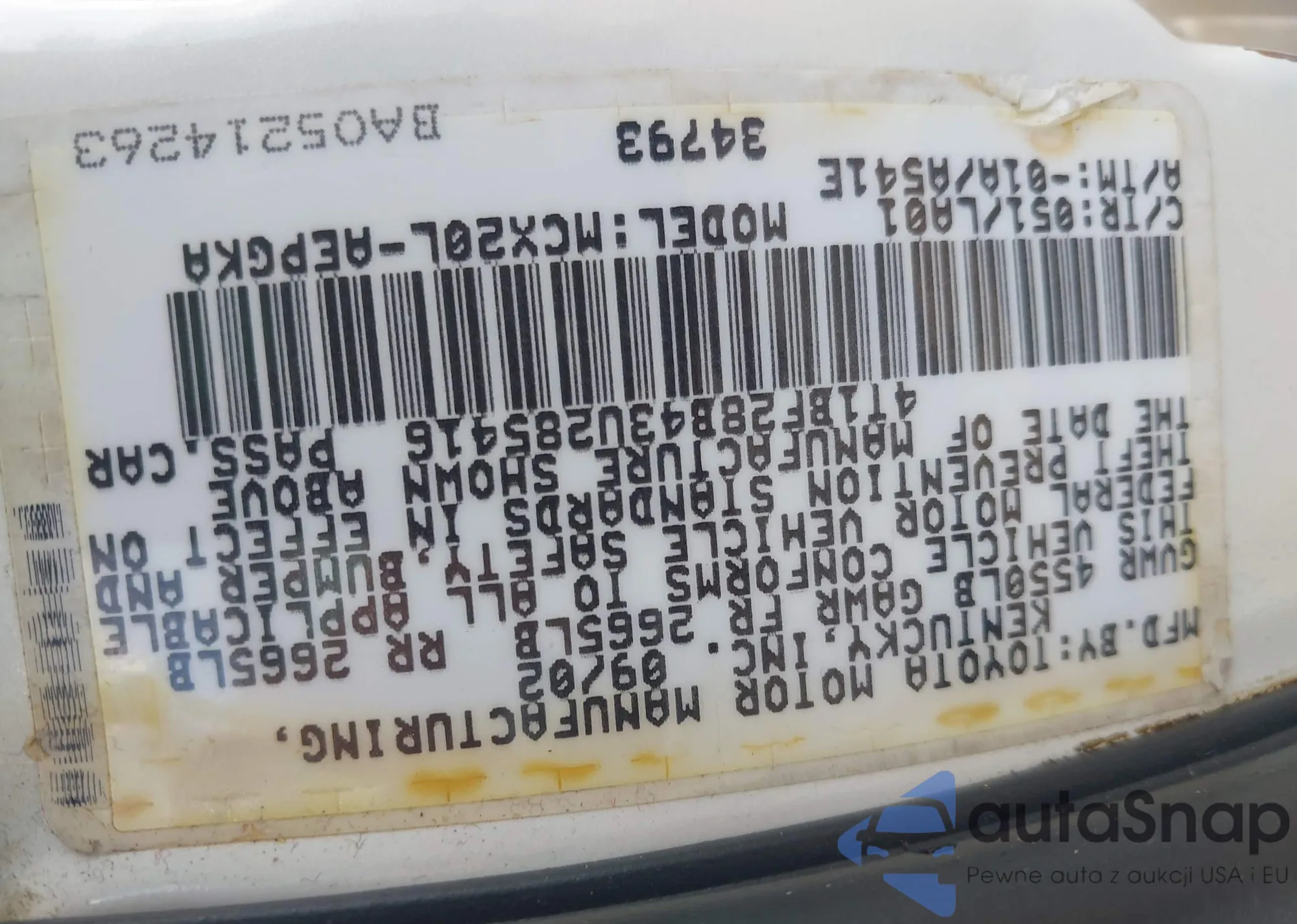 LOT: 43038336 VIN: 2T3G1RFV8SW517595