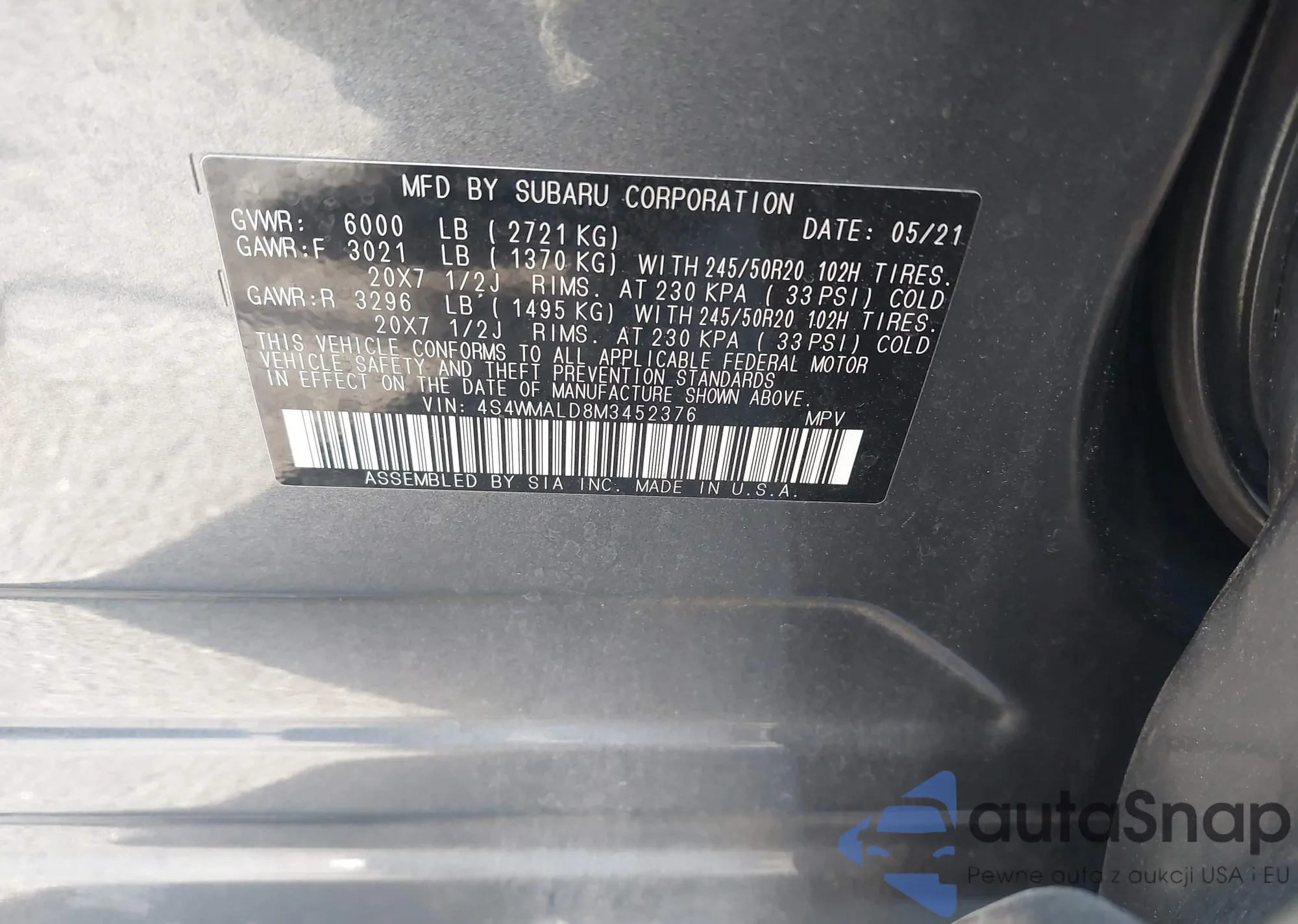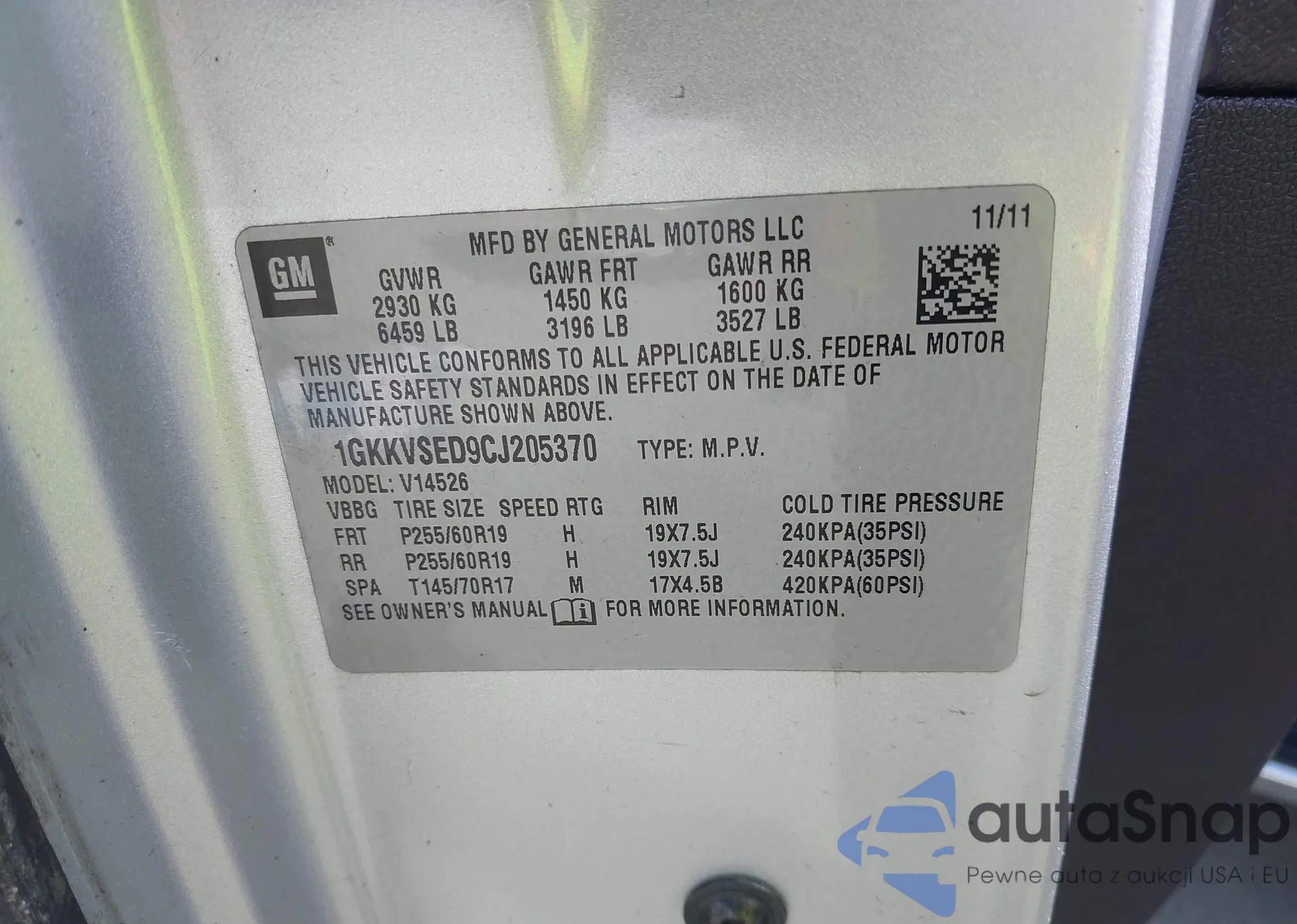• VIN 5J6RM4H31GL121107
