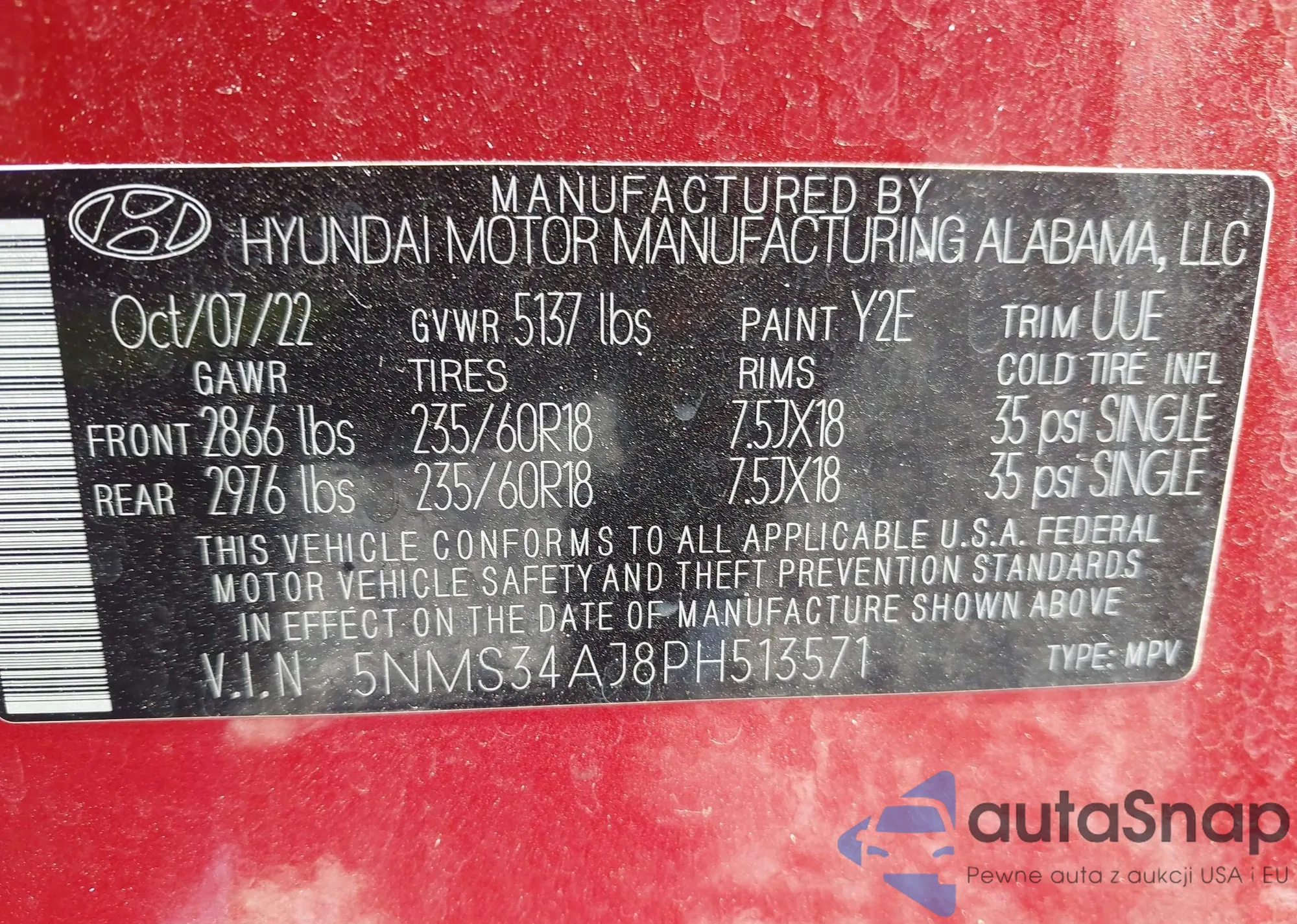 • VIN 5NMS34AJ8PH513571