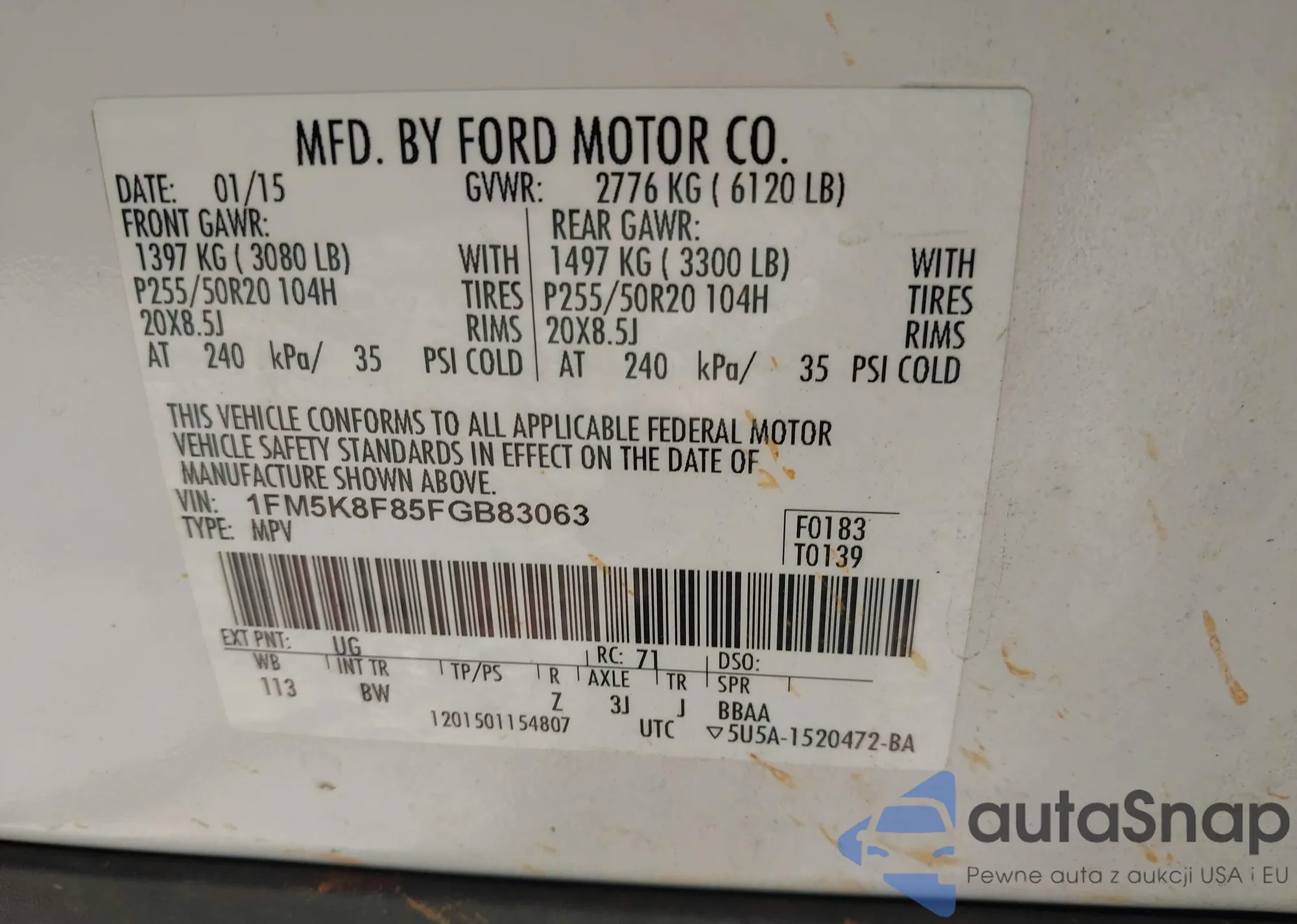 LOT: 42334376 VIN: 1HGCR2F39FA182088