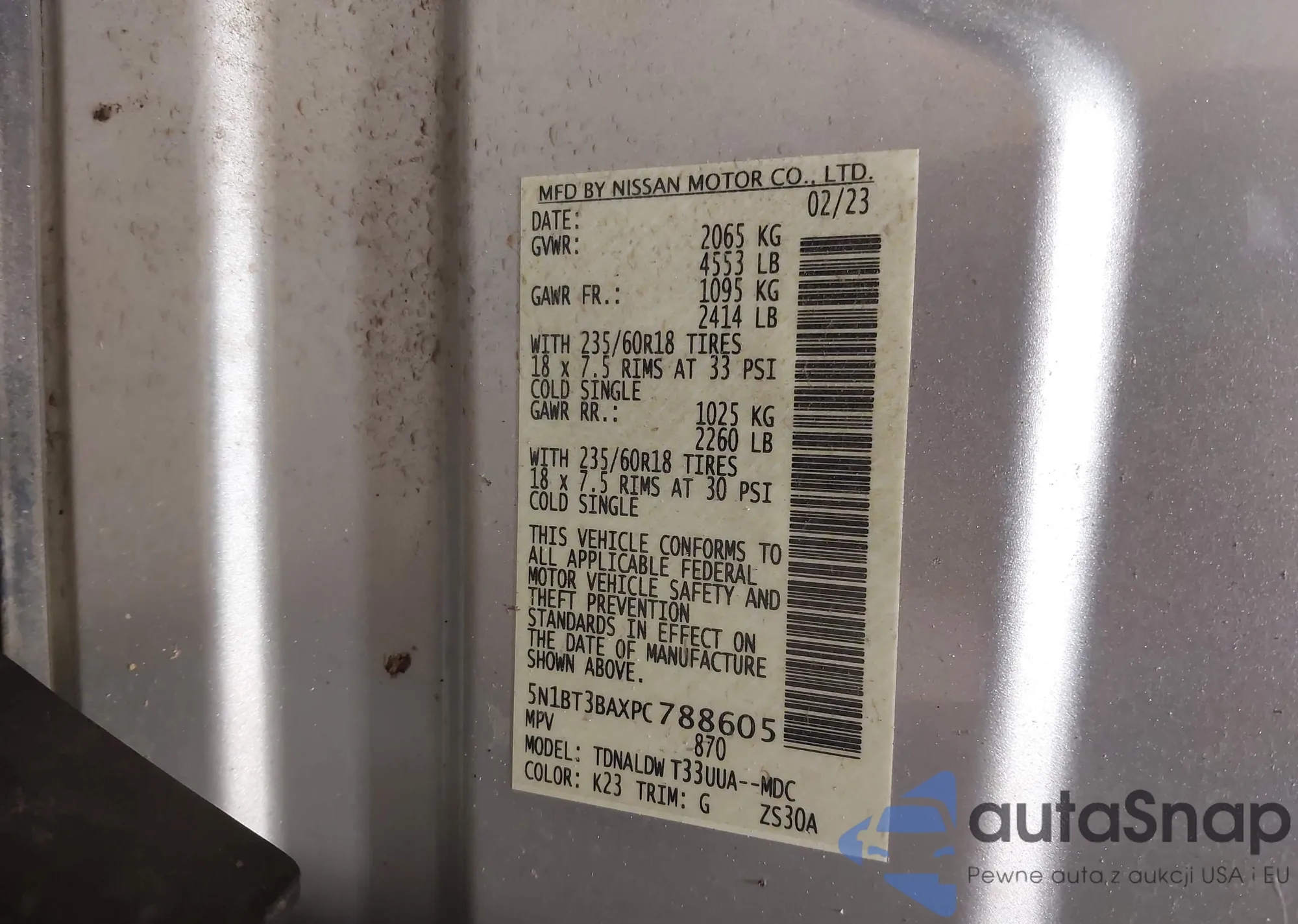 LOT: 42851870 VIN: 5N1BT3BAXPC788605