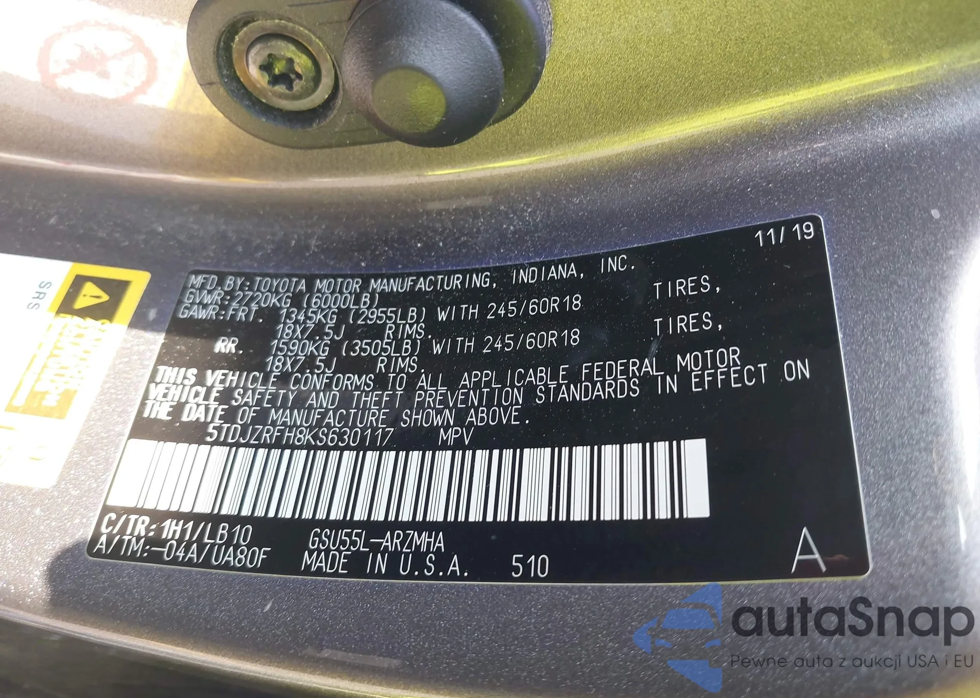 LOT: 43072630 VIN: 5TDJZRFH8KS630117