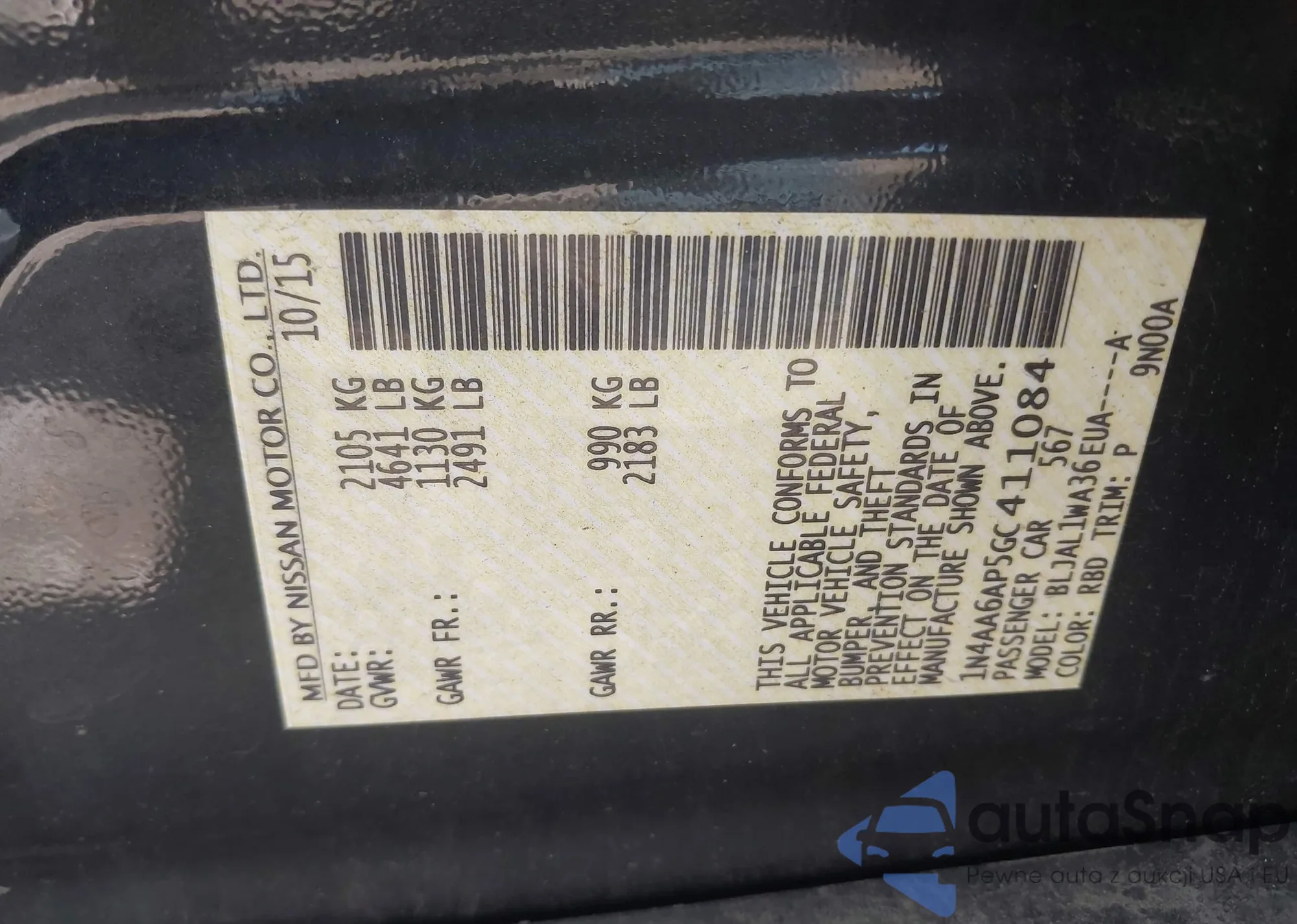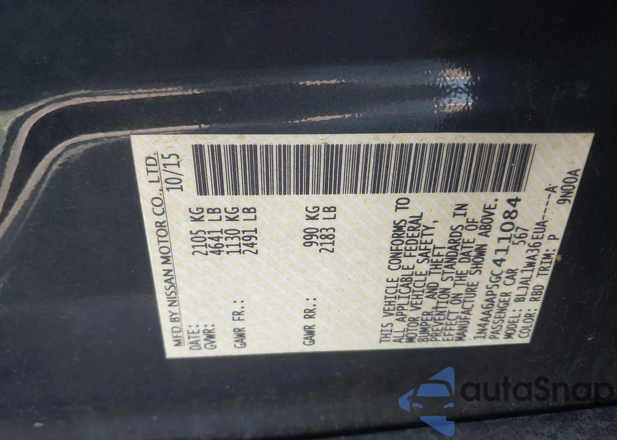 • VIN 1N4AA6AP5GC411084