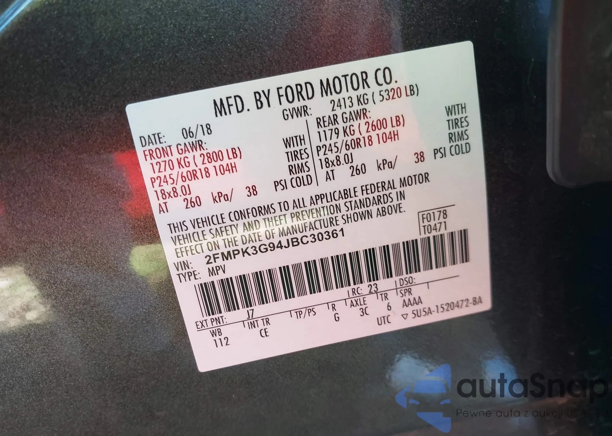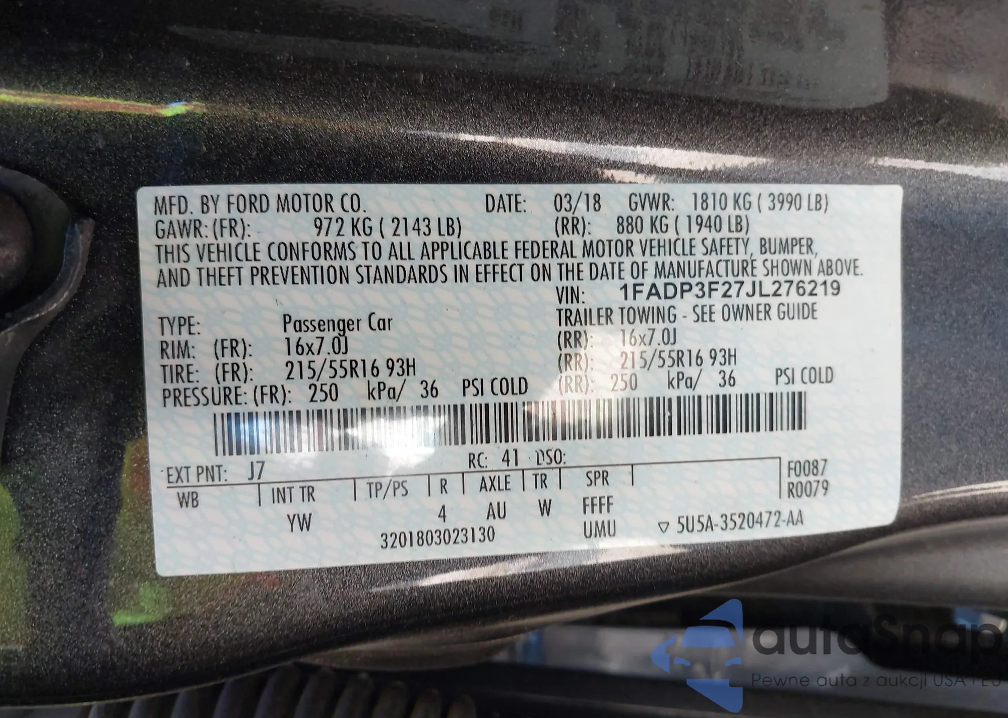 LOT: 43380335 VIN: 1FADP3FE5JL210083