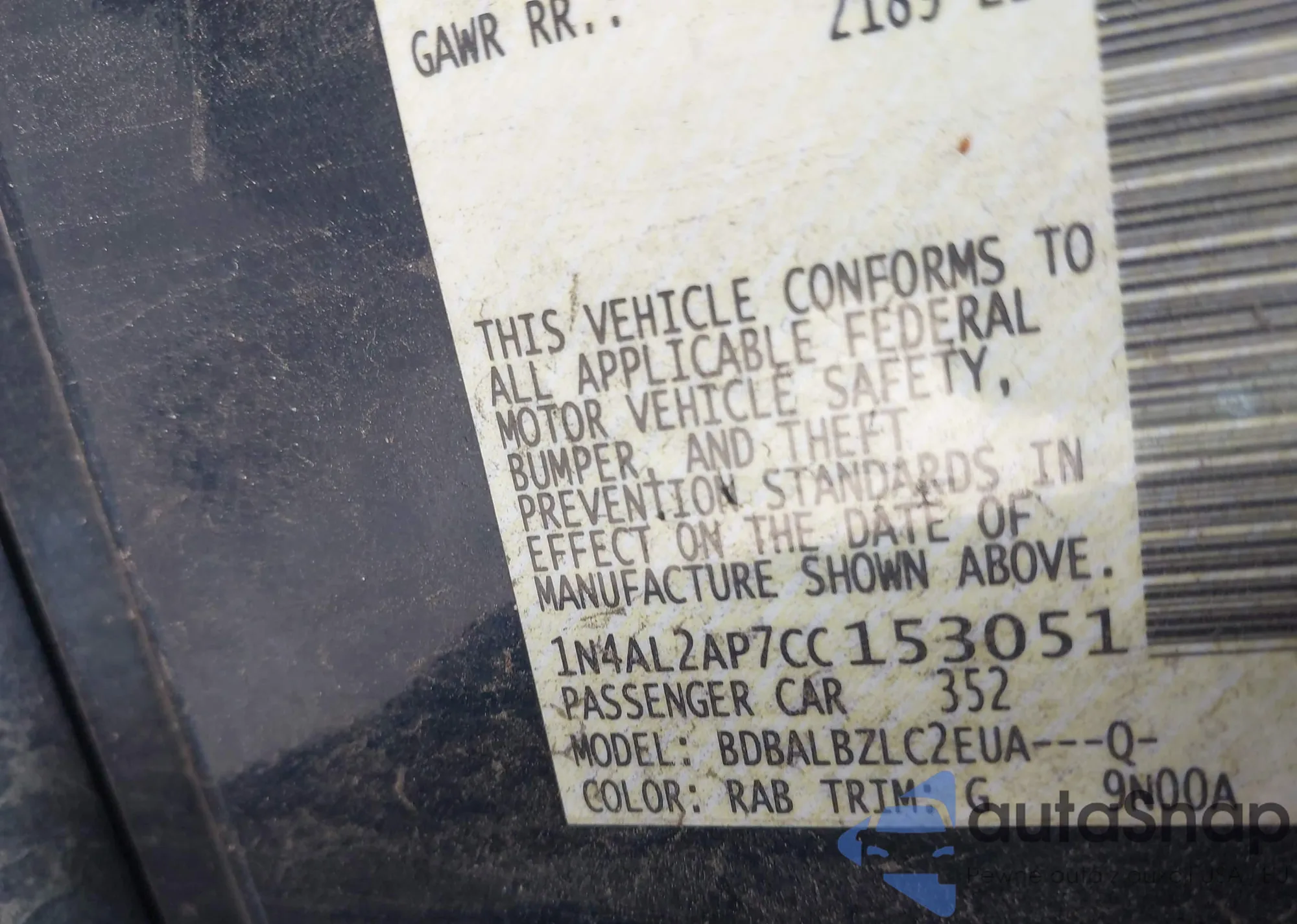 • VIN 1N4AL2AP7CC153051