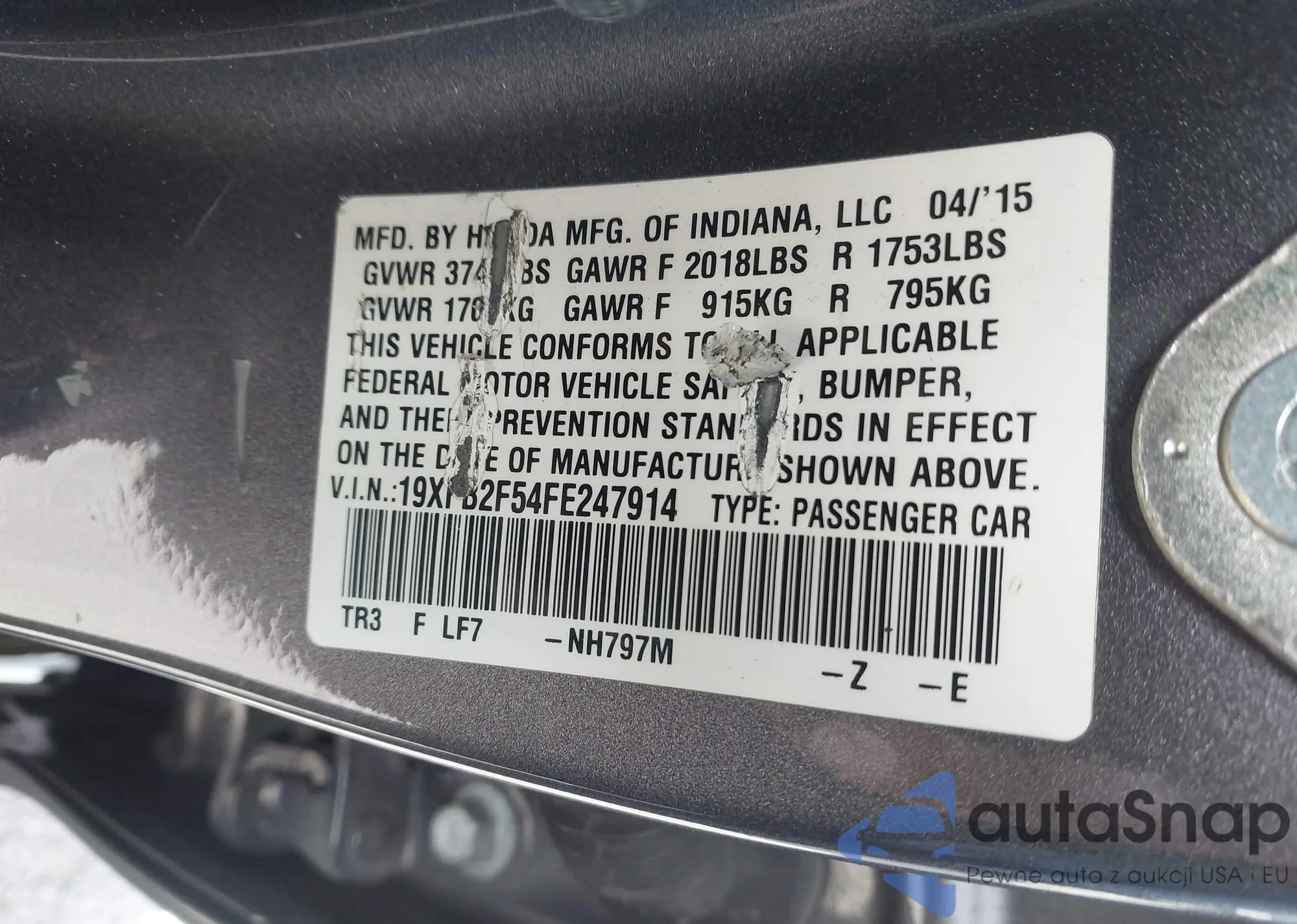 • VIN 19XFB2F54FE247914