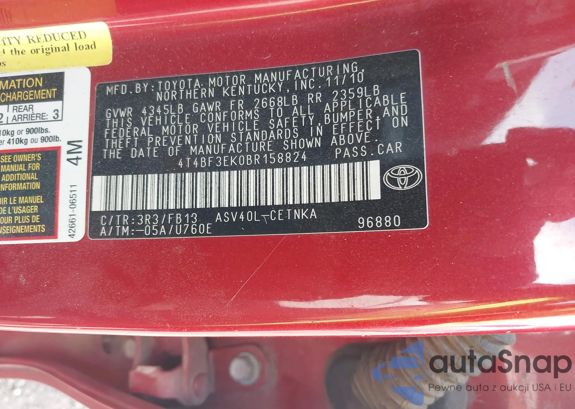 • VIN 4T4BF3EK0BR158824