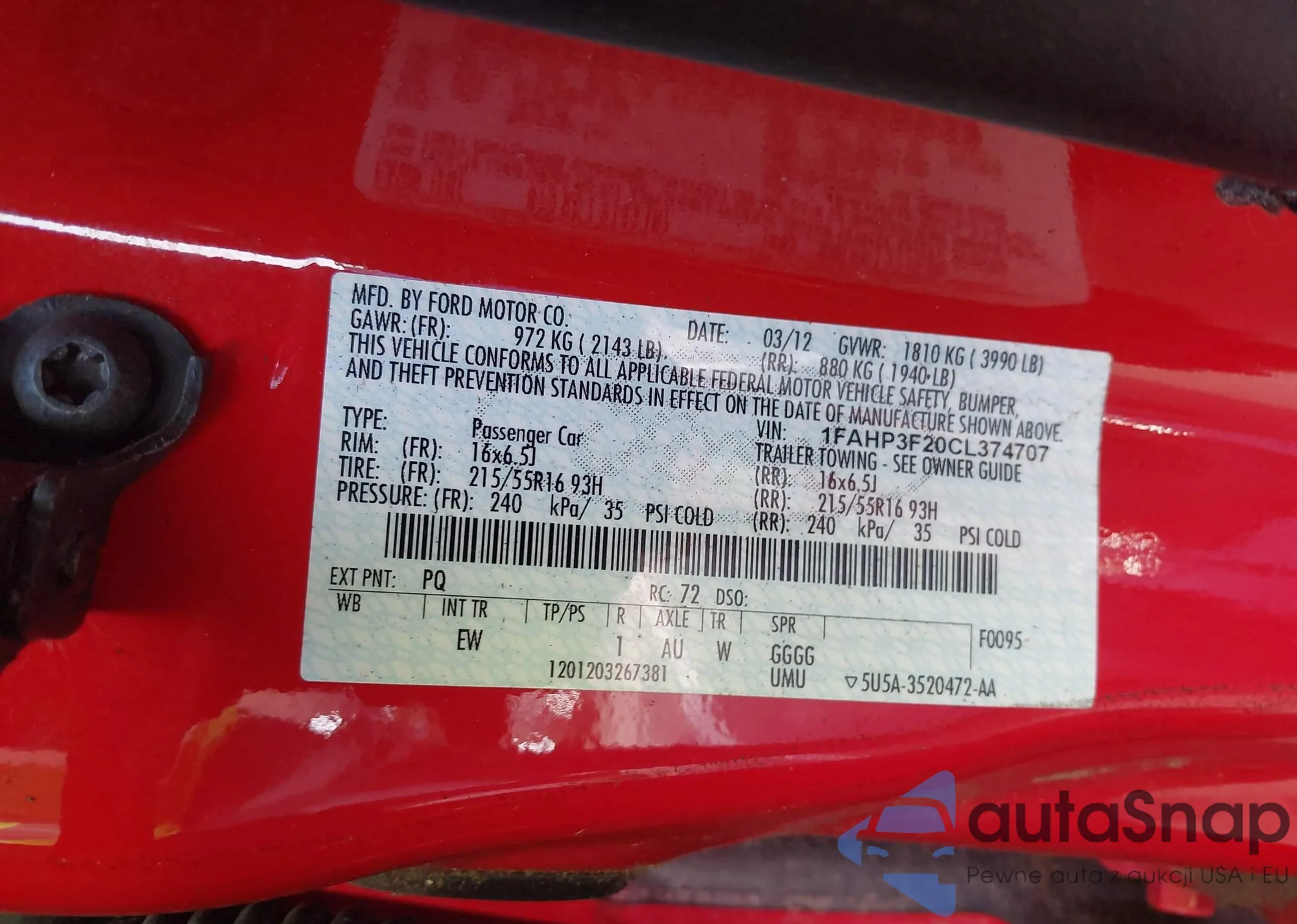 • VIN 1FAHP3F20CL374707