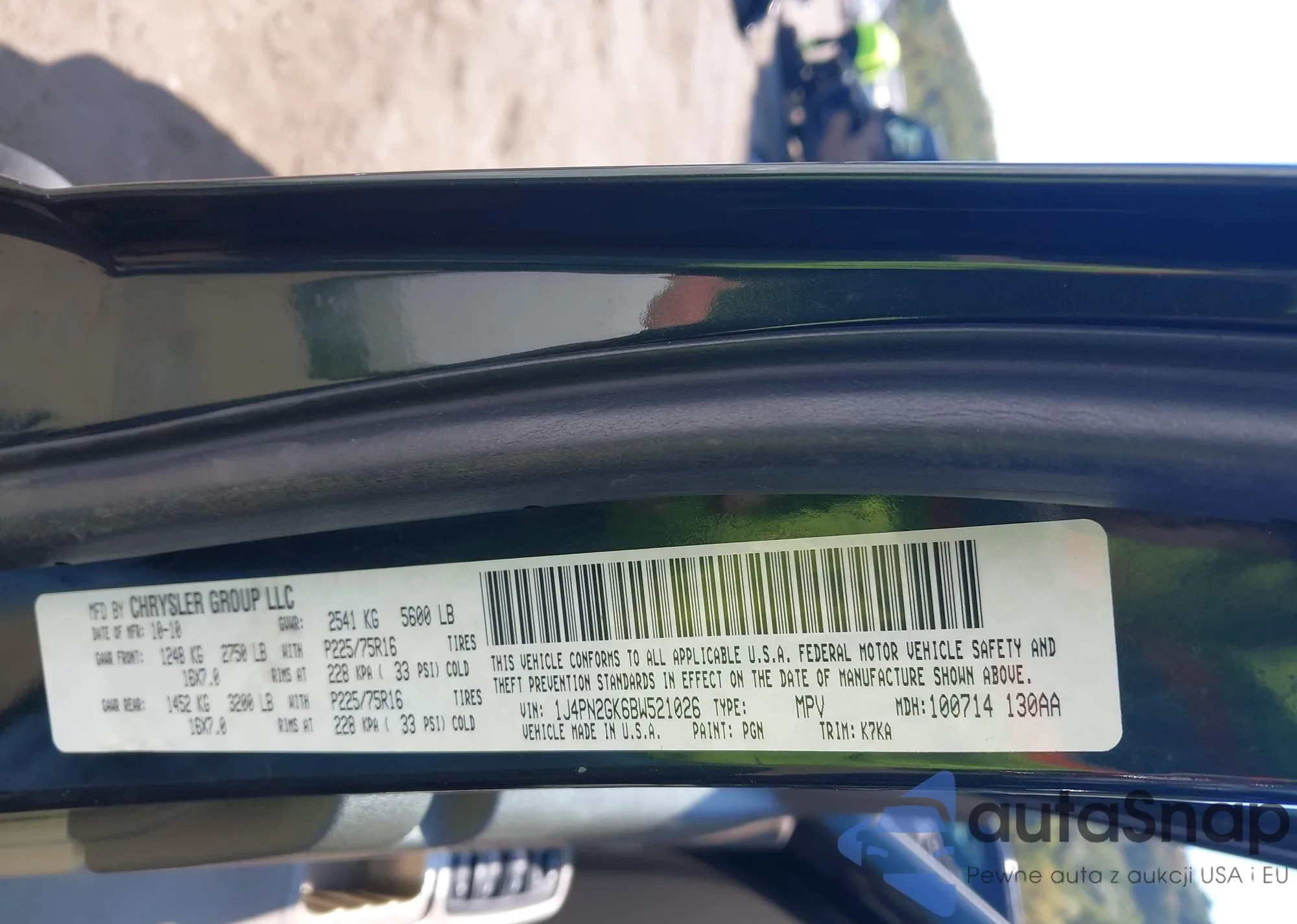 LOT: 43118982 VIN: 1J4PN2GK6BW521026