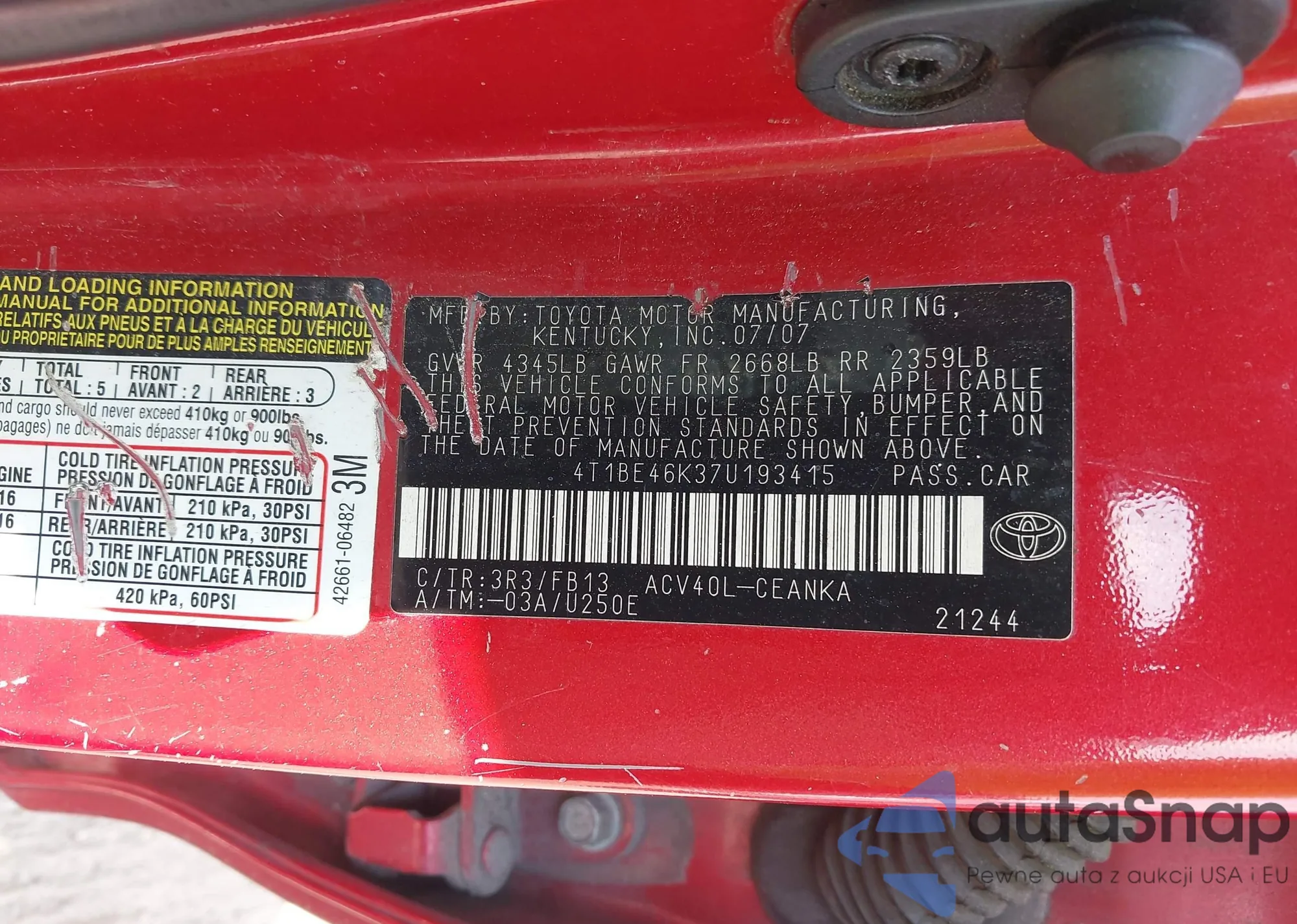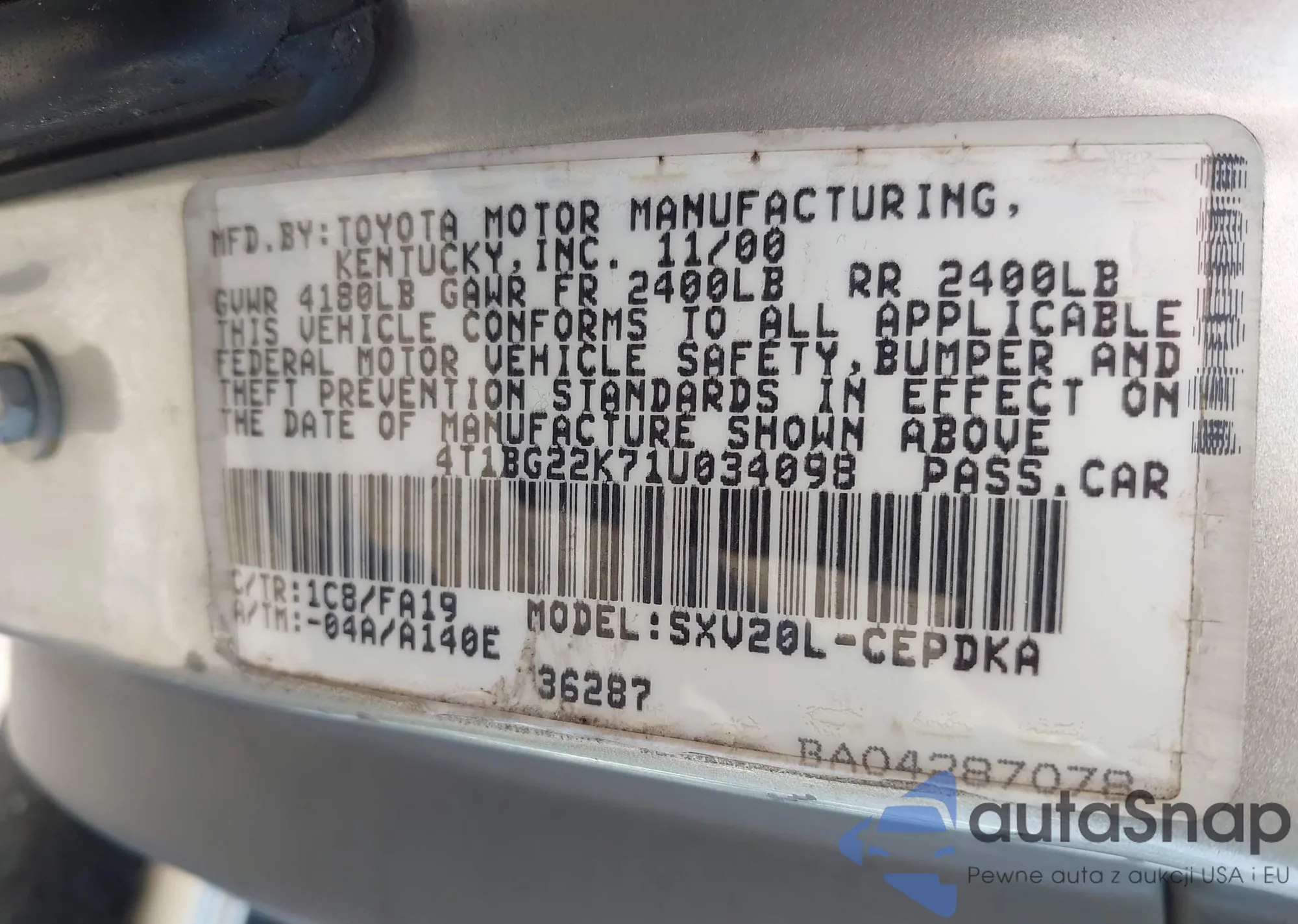 LOT: 43371253 VIN: 4T1BG22K71U034098