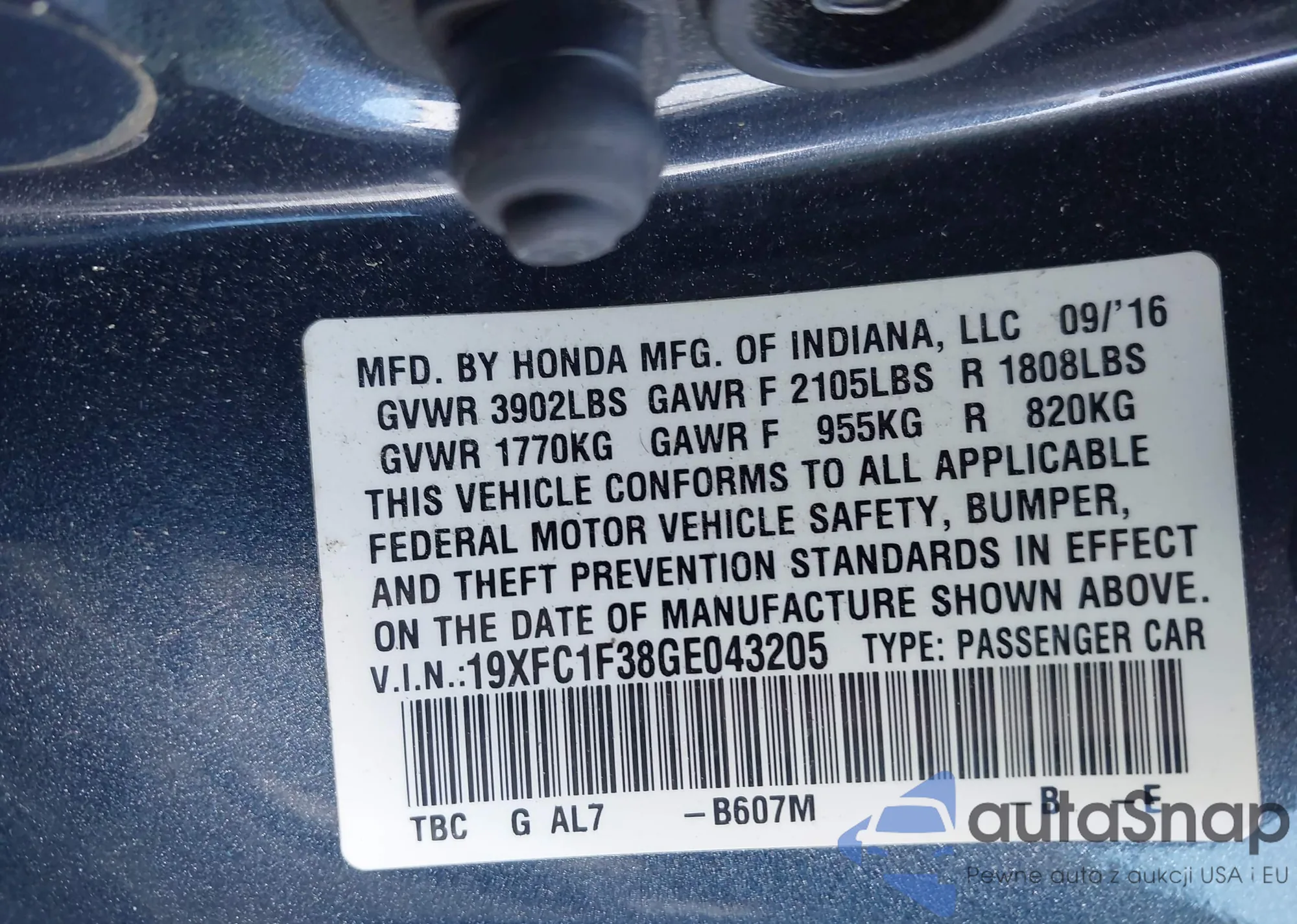 • VIN 19XFC1F38GE043205
