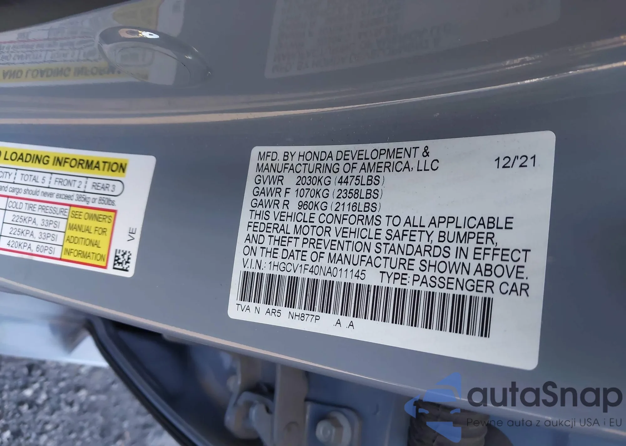 LOT: 43292427 VIN: 1HGCM56427A054124