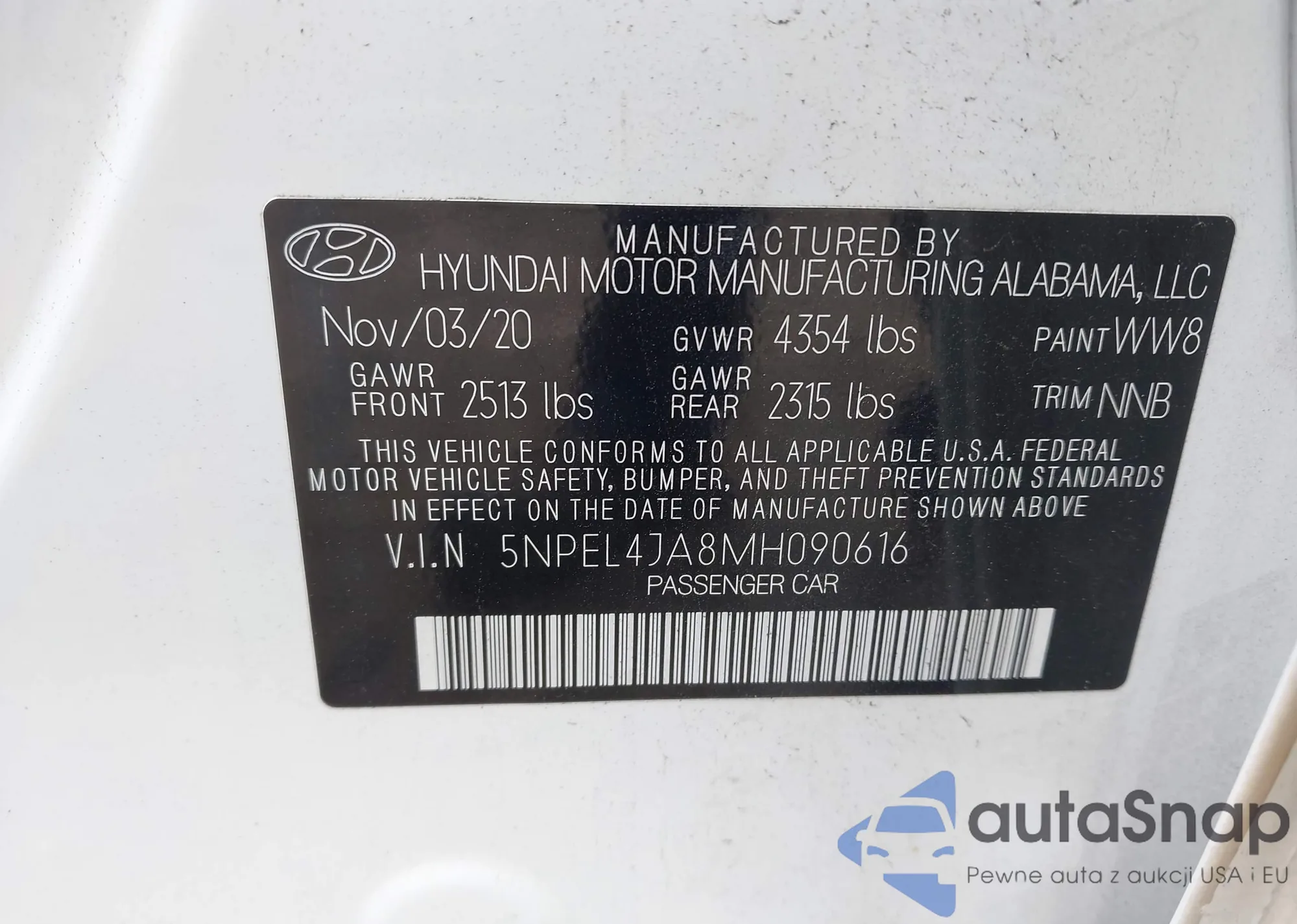 • VIN 5NPEL4JA8MH090616