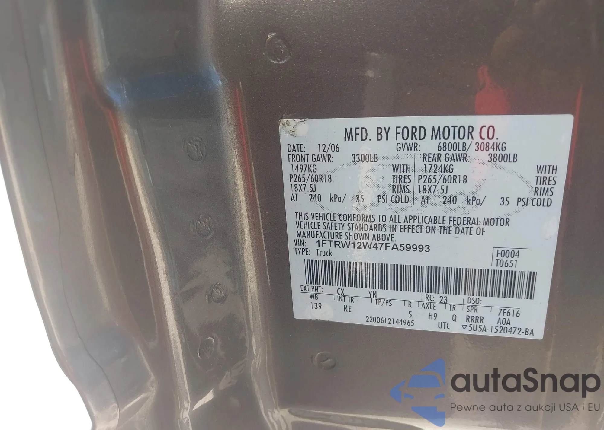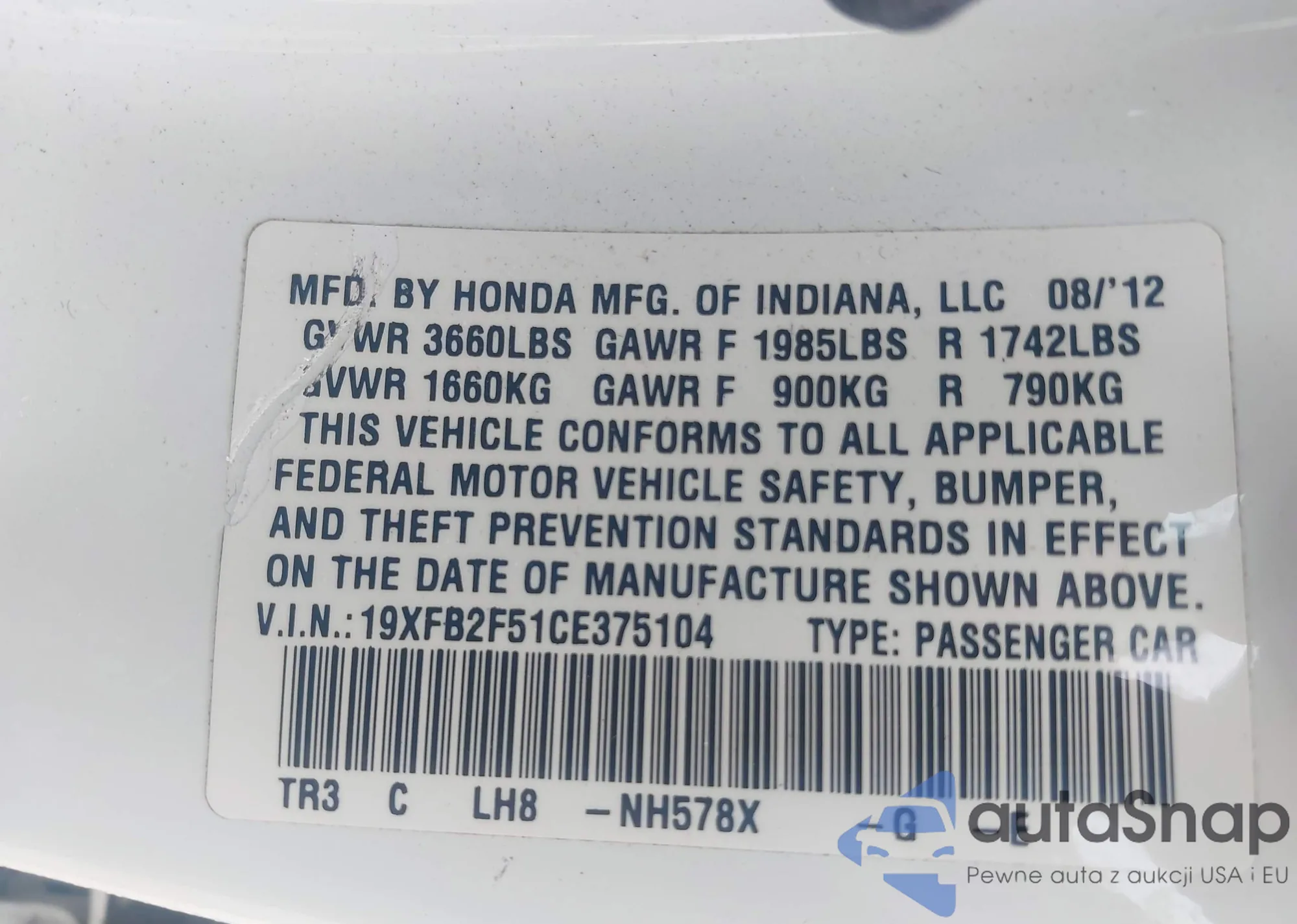 LOT: 43279202 VIN: 19XFB2F95CE053732