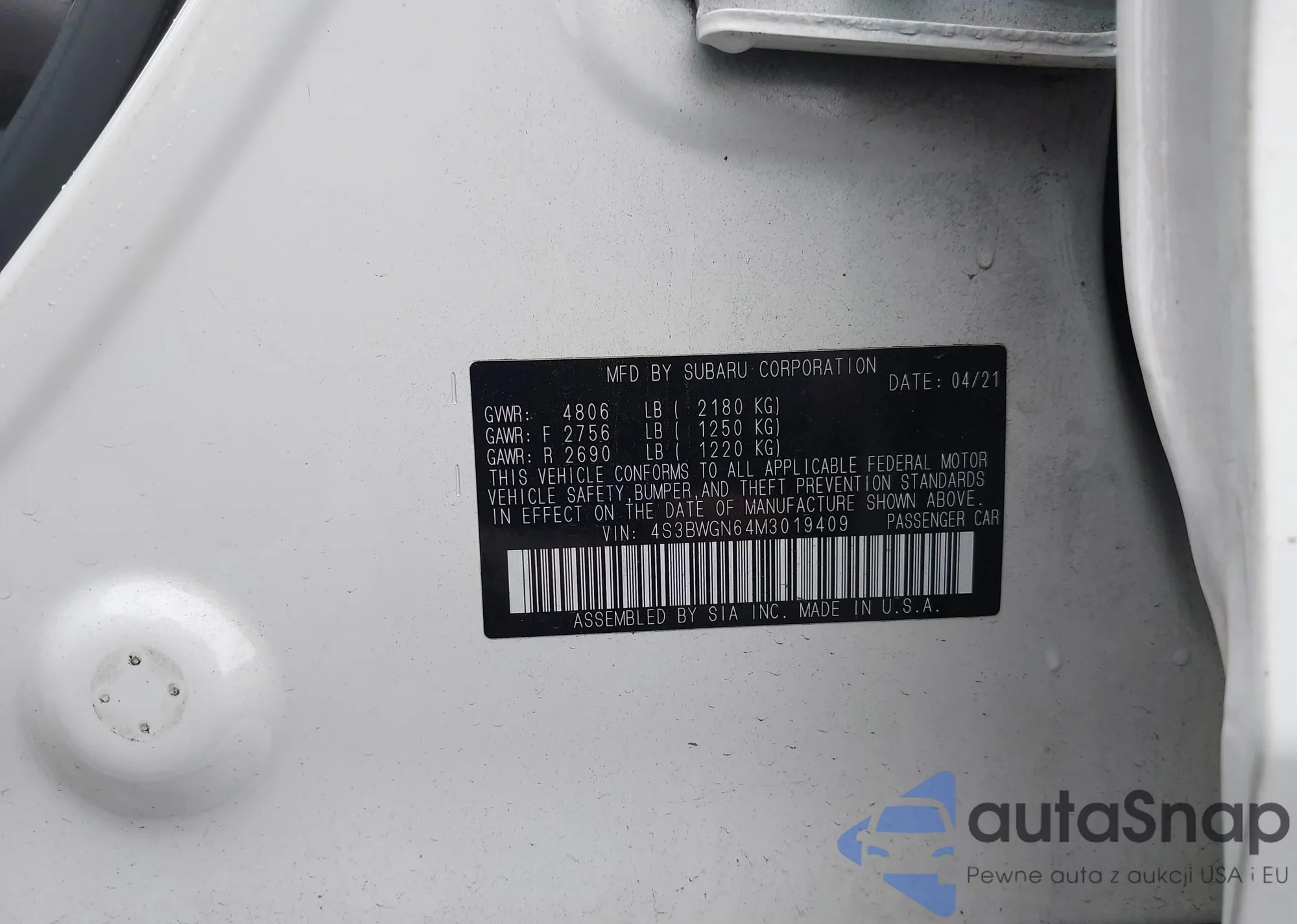 • VIN 4S3BWGN64M3019409