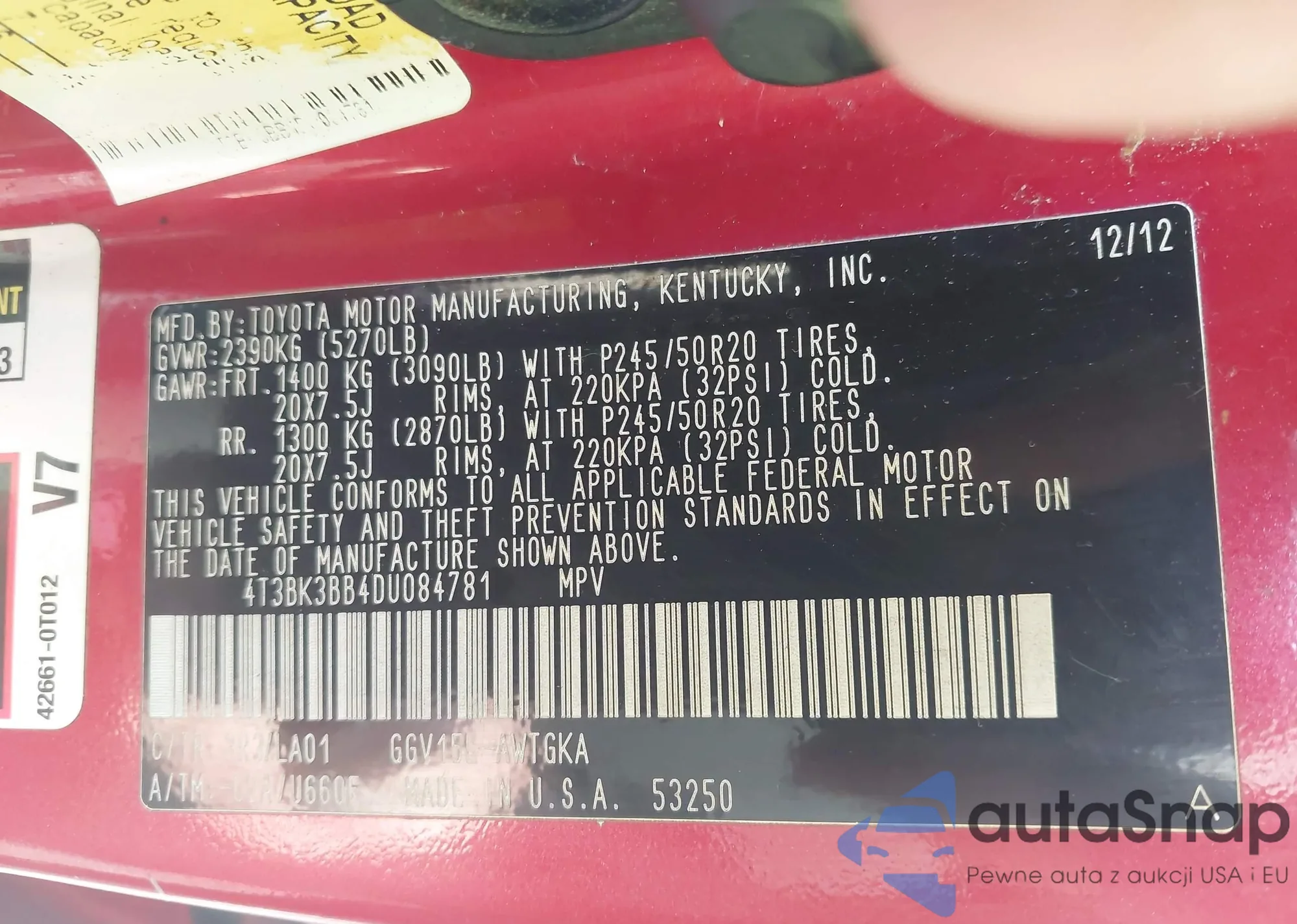 LOT: 43308861 VIN: 4T3BK3BB4DU084781