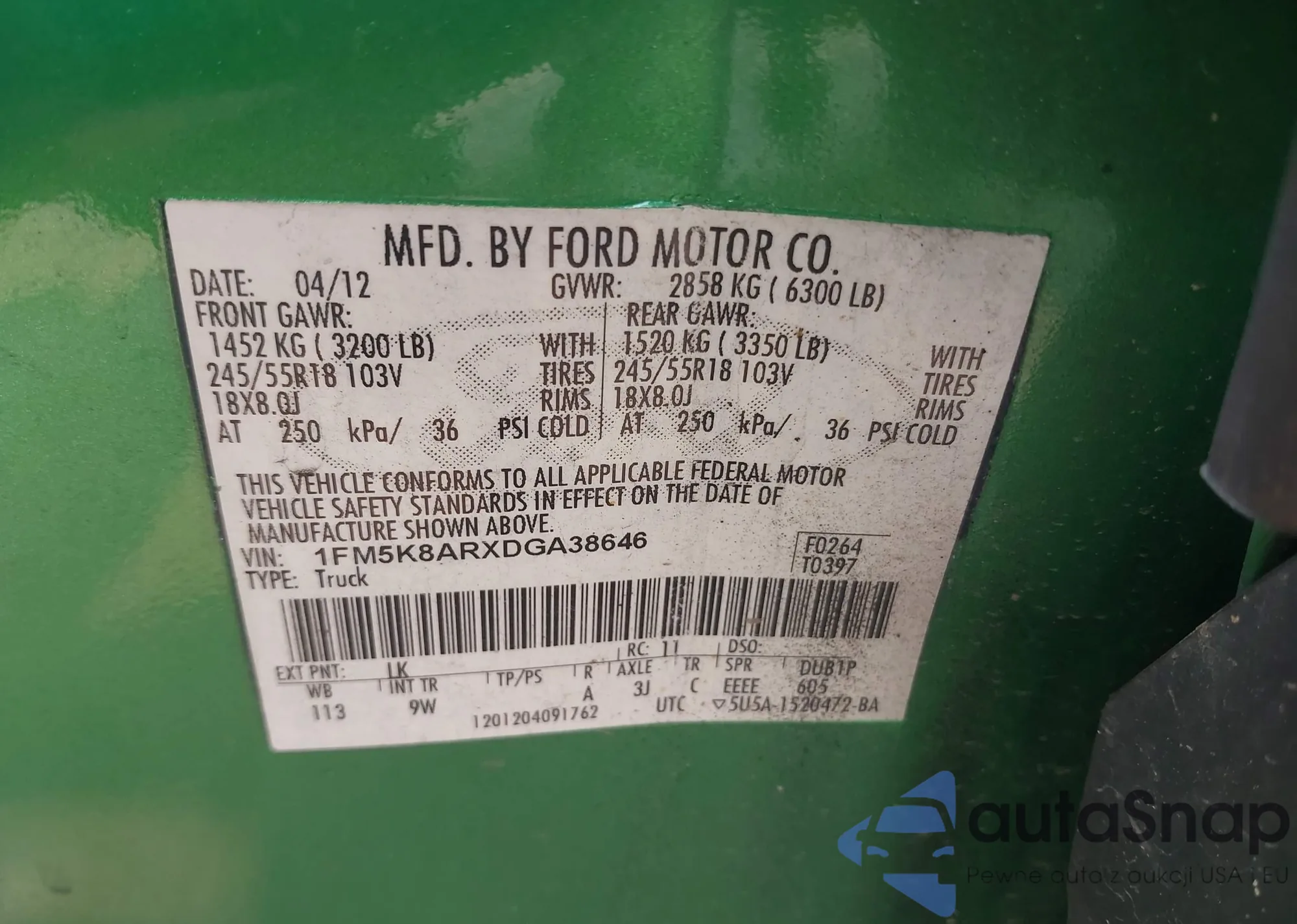 • VIN 1FM5K8ARXDGA38646