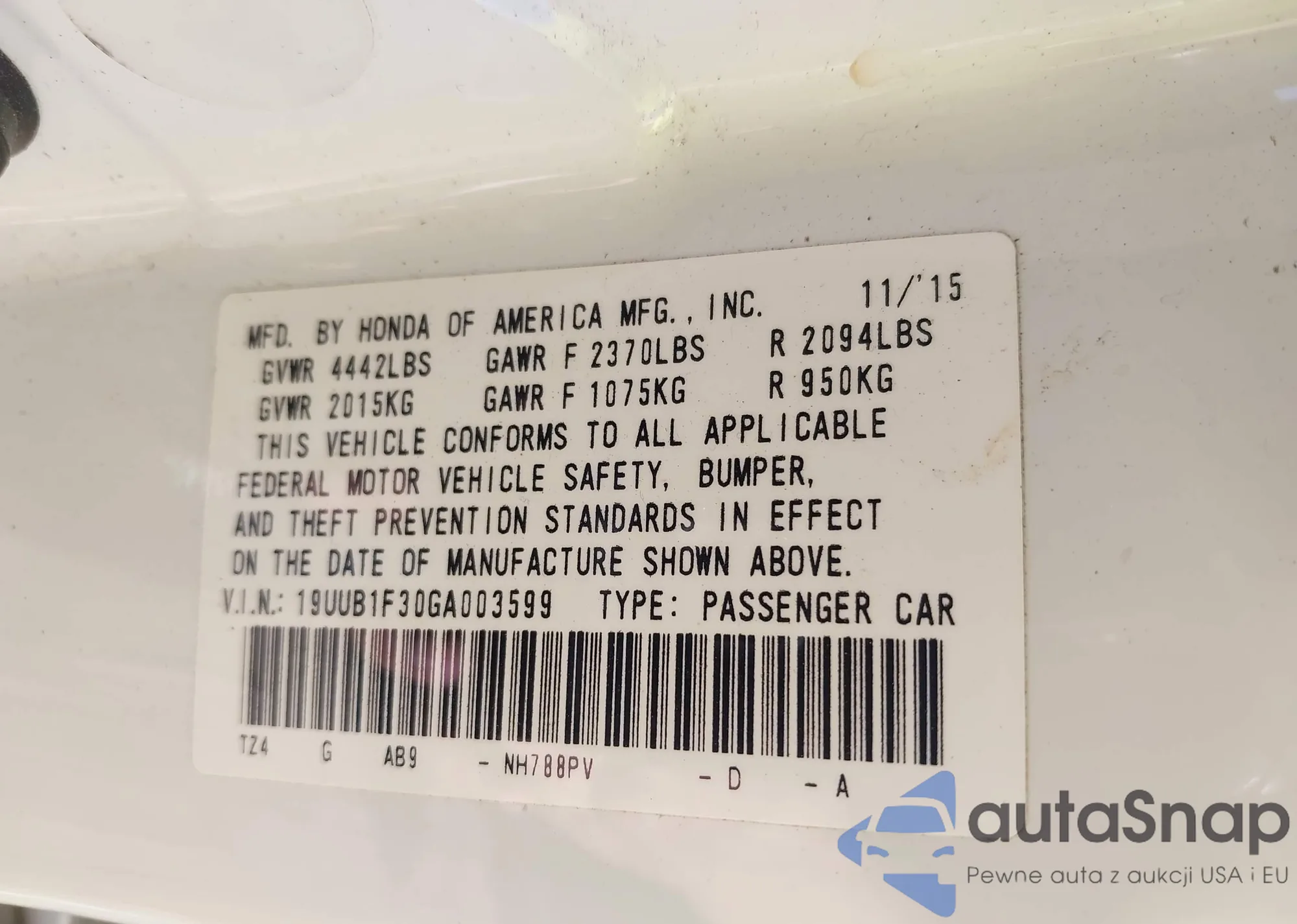 • VIN 19UUB1F30GA003599