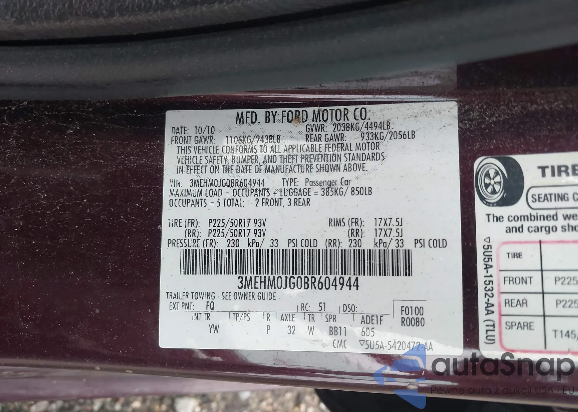• VIN 5J8TB1H26BA000862