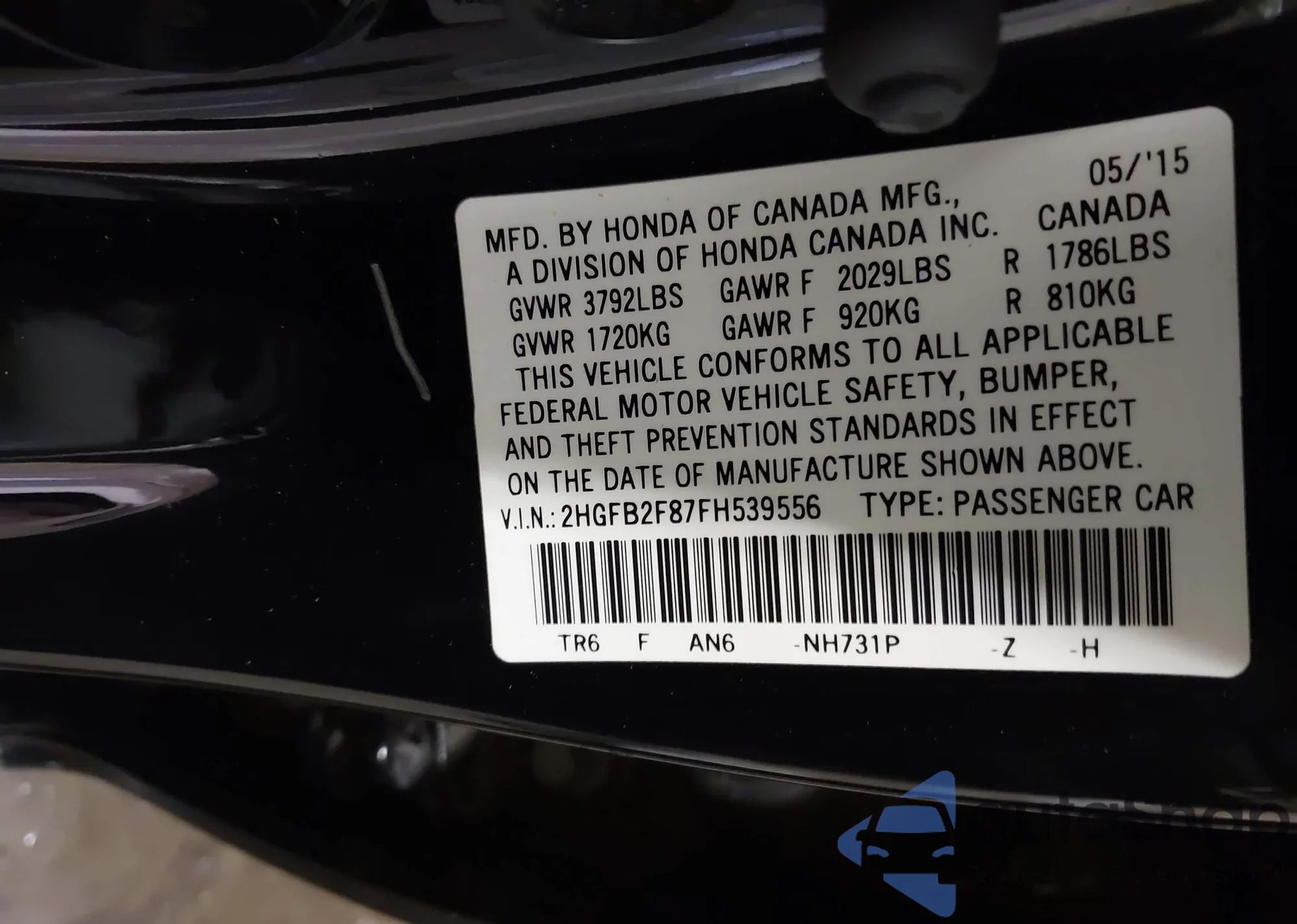 • VIN 2HGFB2F87FH539556